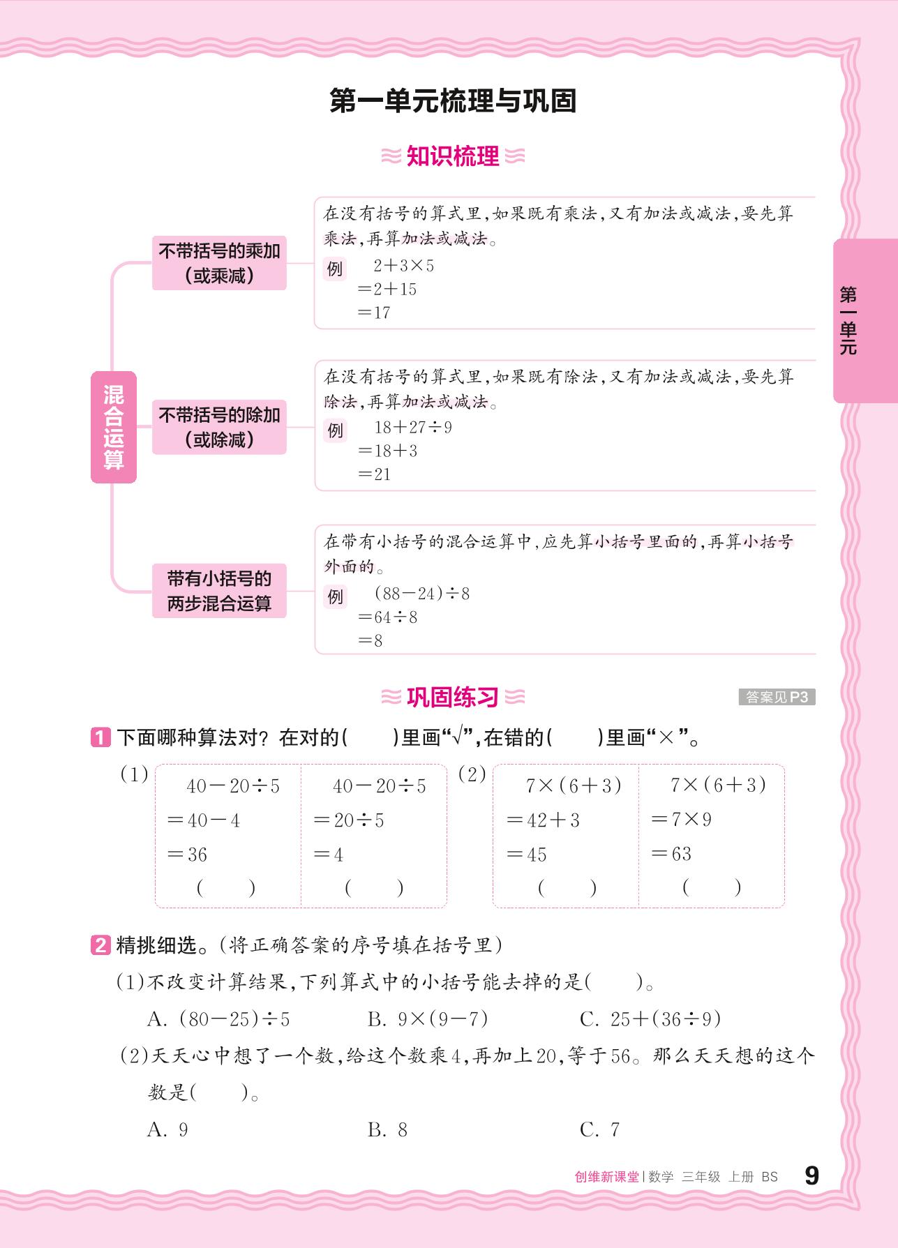2024秋上册三年级数学北师版 第一单元梳理与巩固