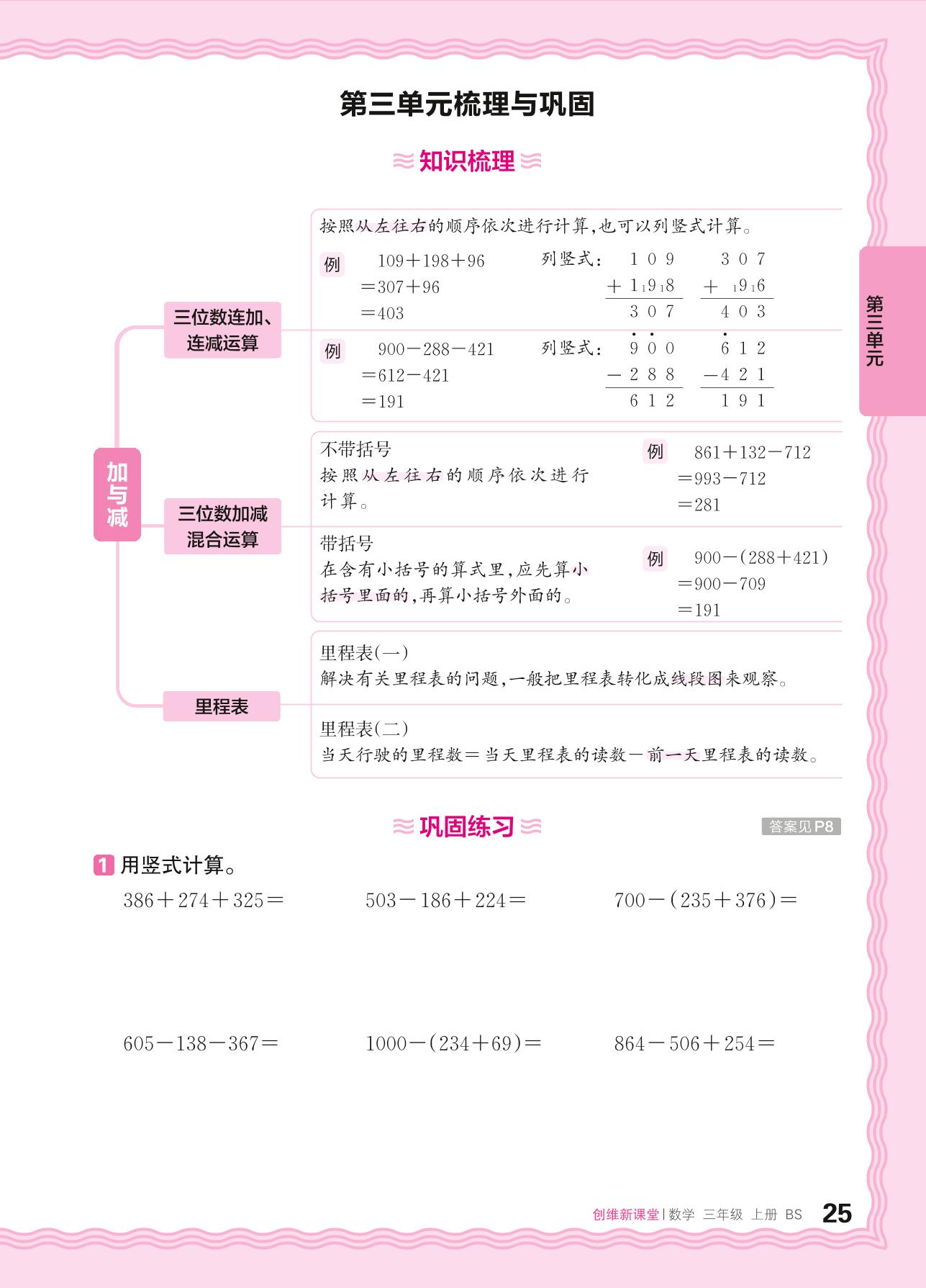 2024秋上册三年级数学北师版 第三单元梳理与巩固