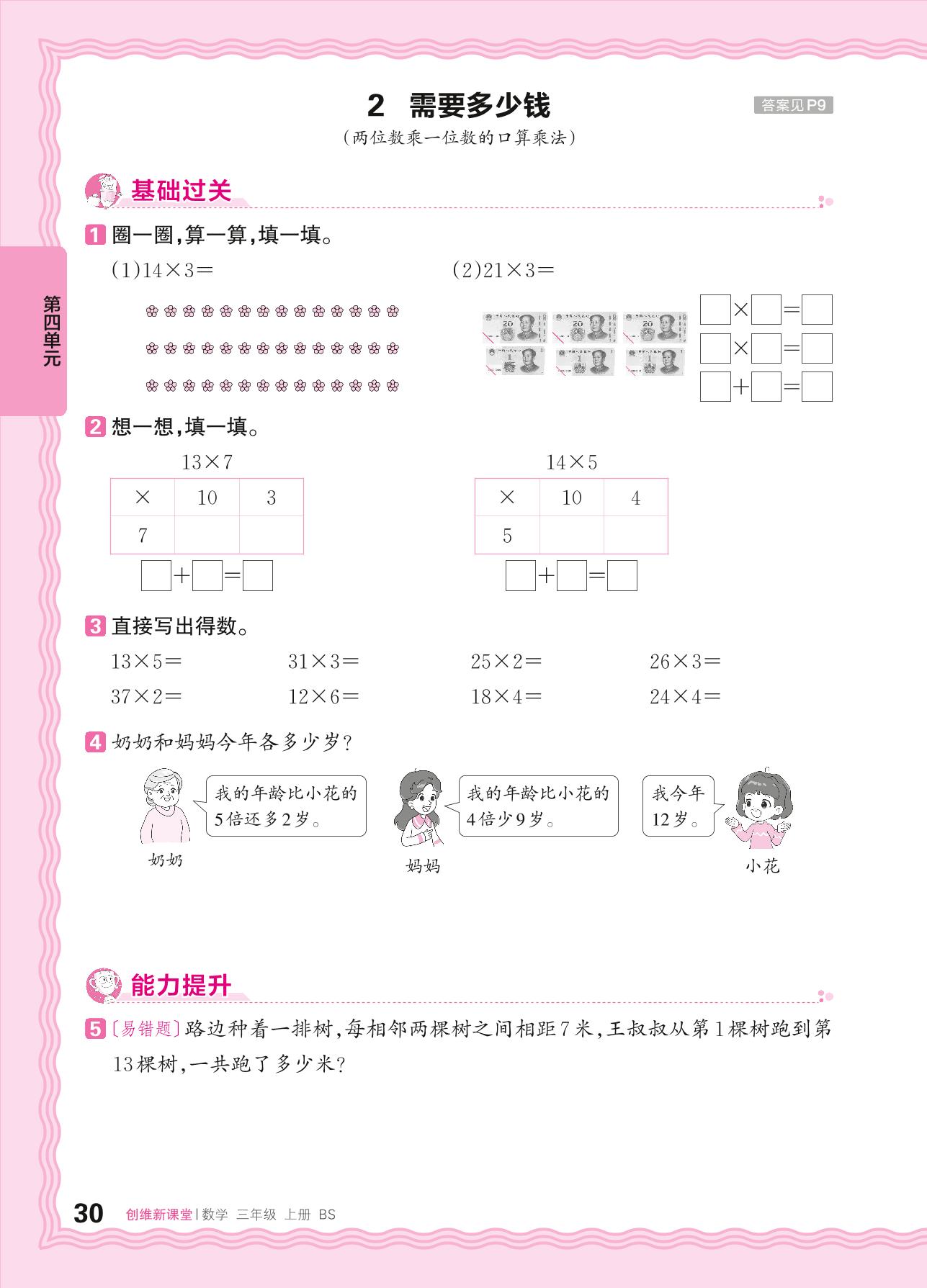 2024秋上册三年级数学北师版 第四单元 乘与除——2. 需要多少钱