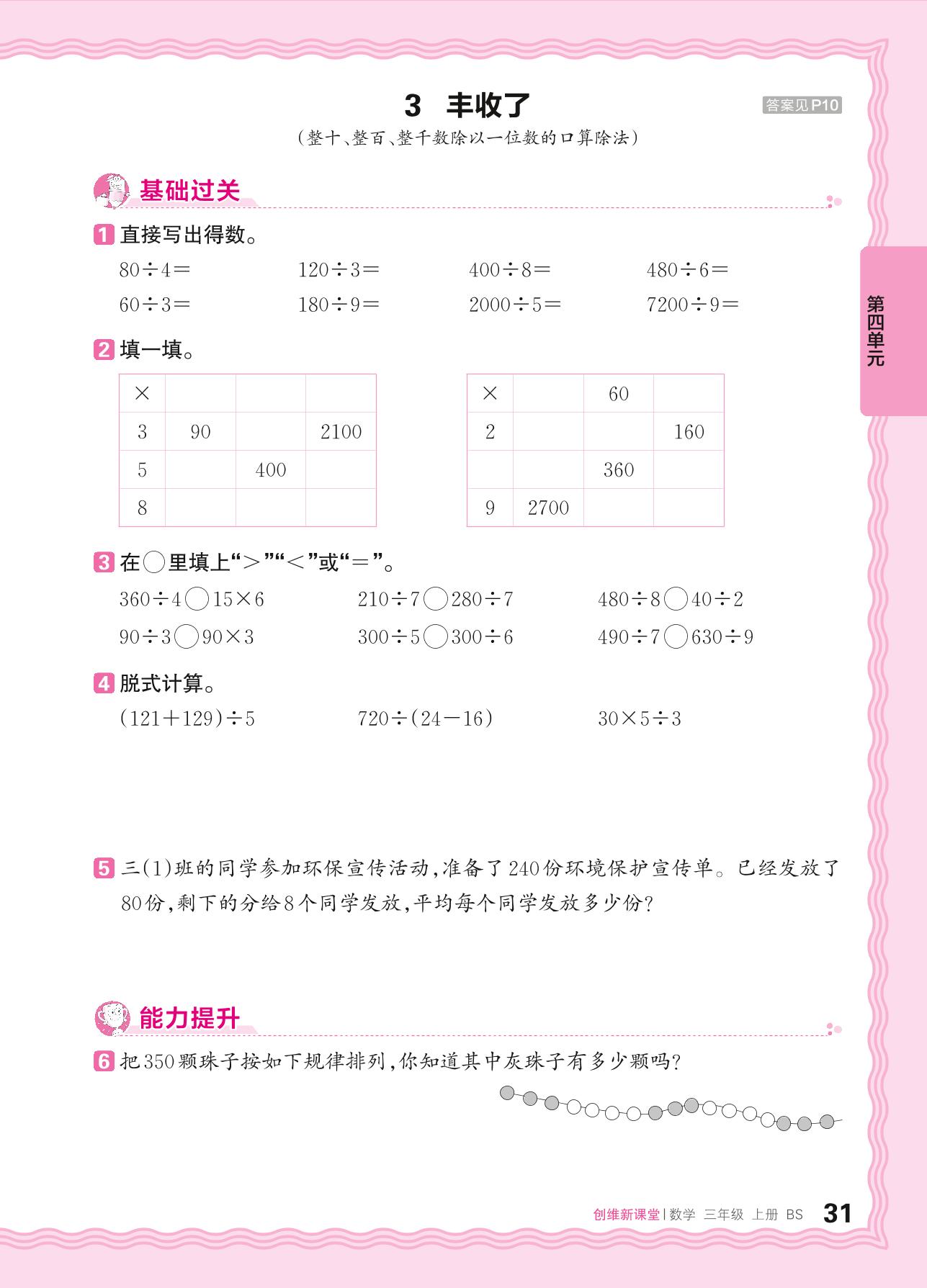 2024秋上册三年级数学北师版 第四单元 乘与除——3. 丰收了