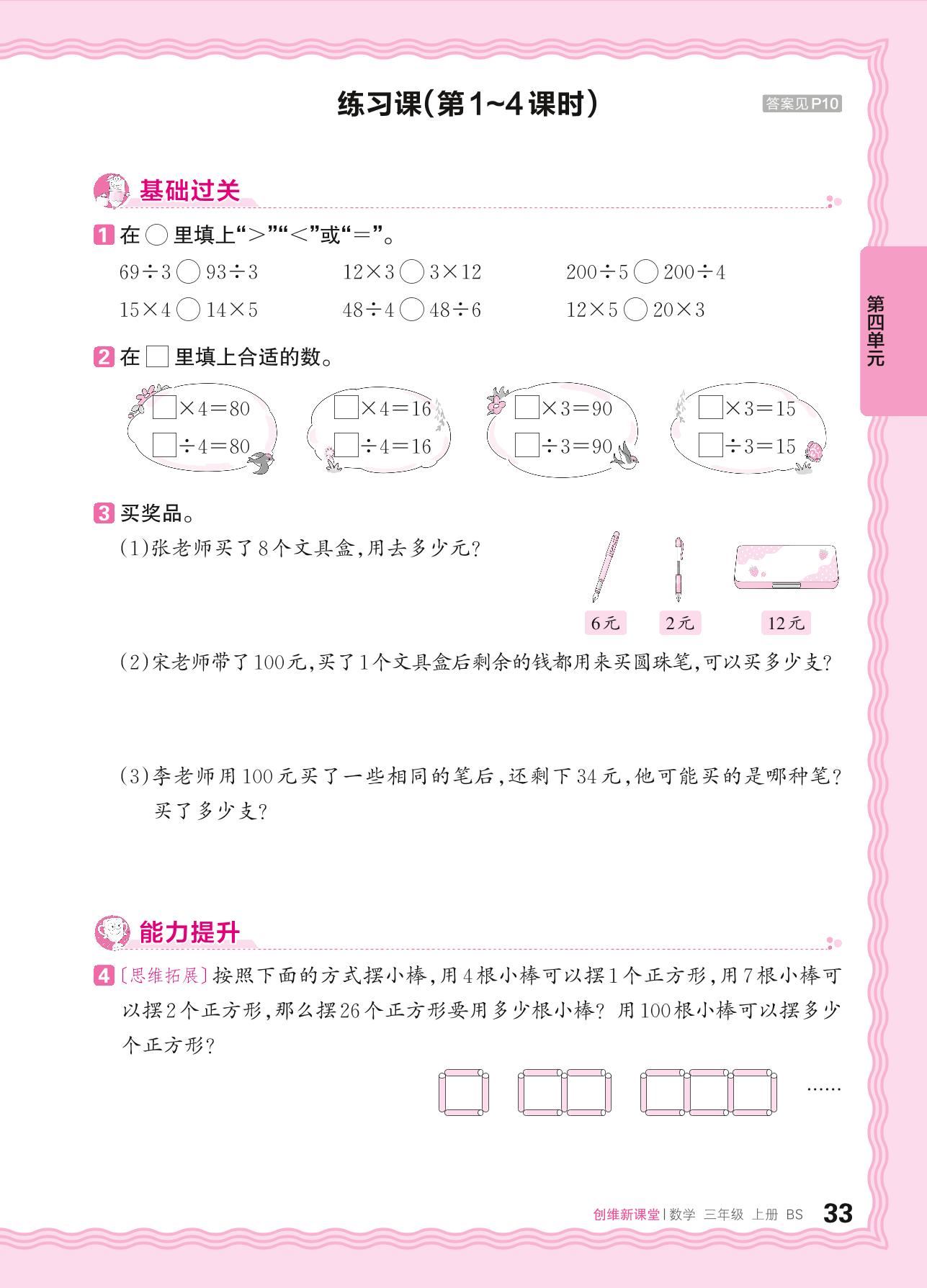 2024秋上册三年级数学北师版 第四单元 乘与除练习课
