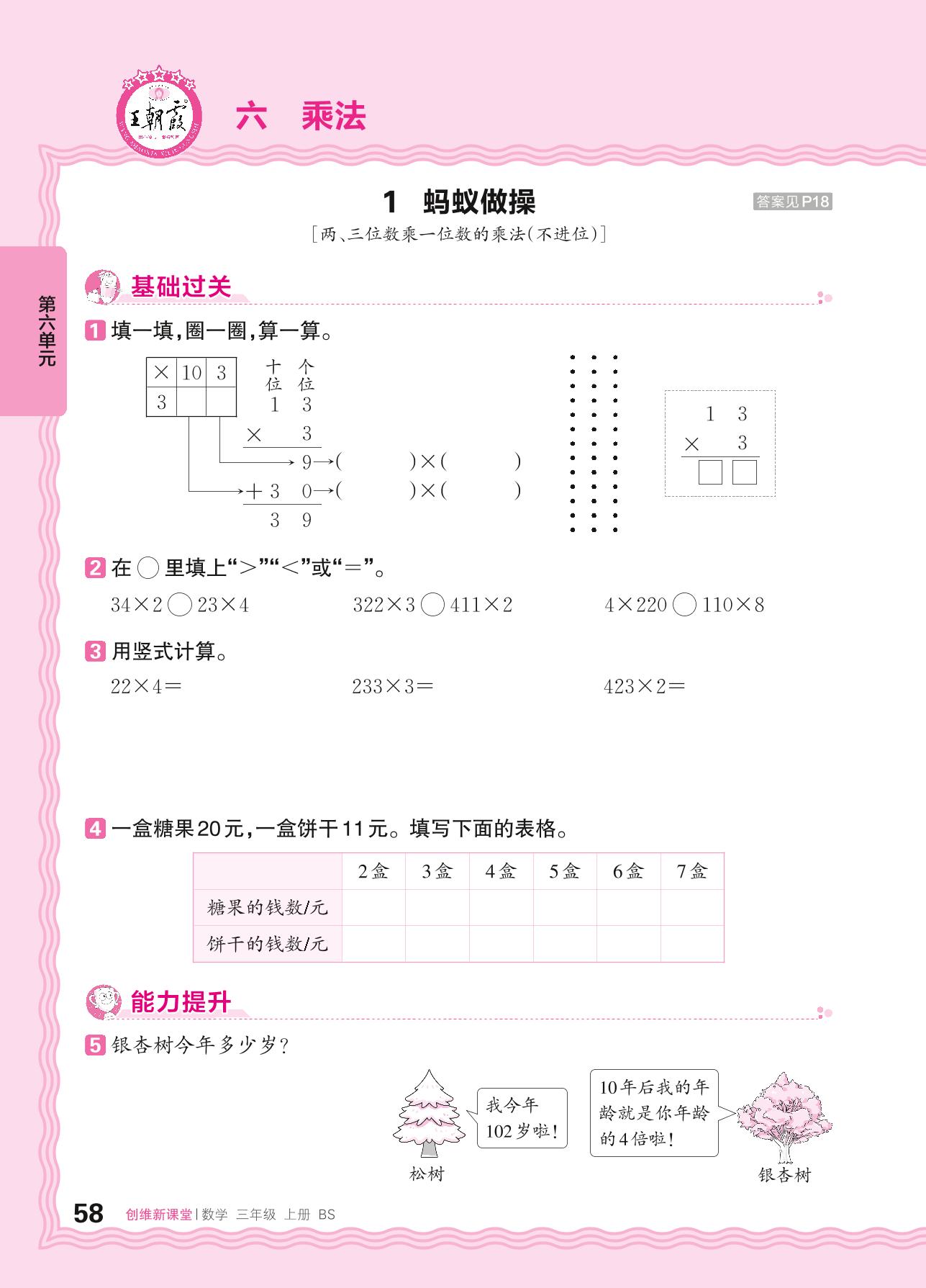 2024秋上册三年级数学北师版 第六单元 乘法——1. 蚂蚁做操