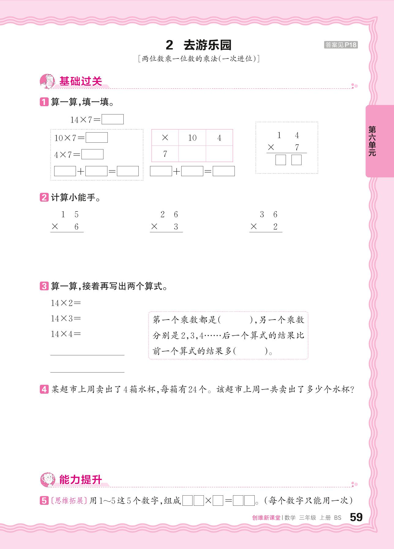2024秋上册三年级数学北师版 第六单元 乘法——2. 去游乐园
