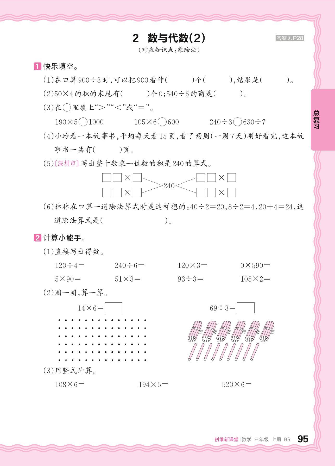 2024秋上册三年级数学北师版 总复习——2. 数与代数(2)