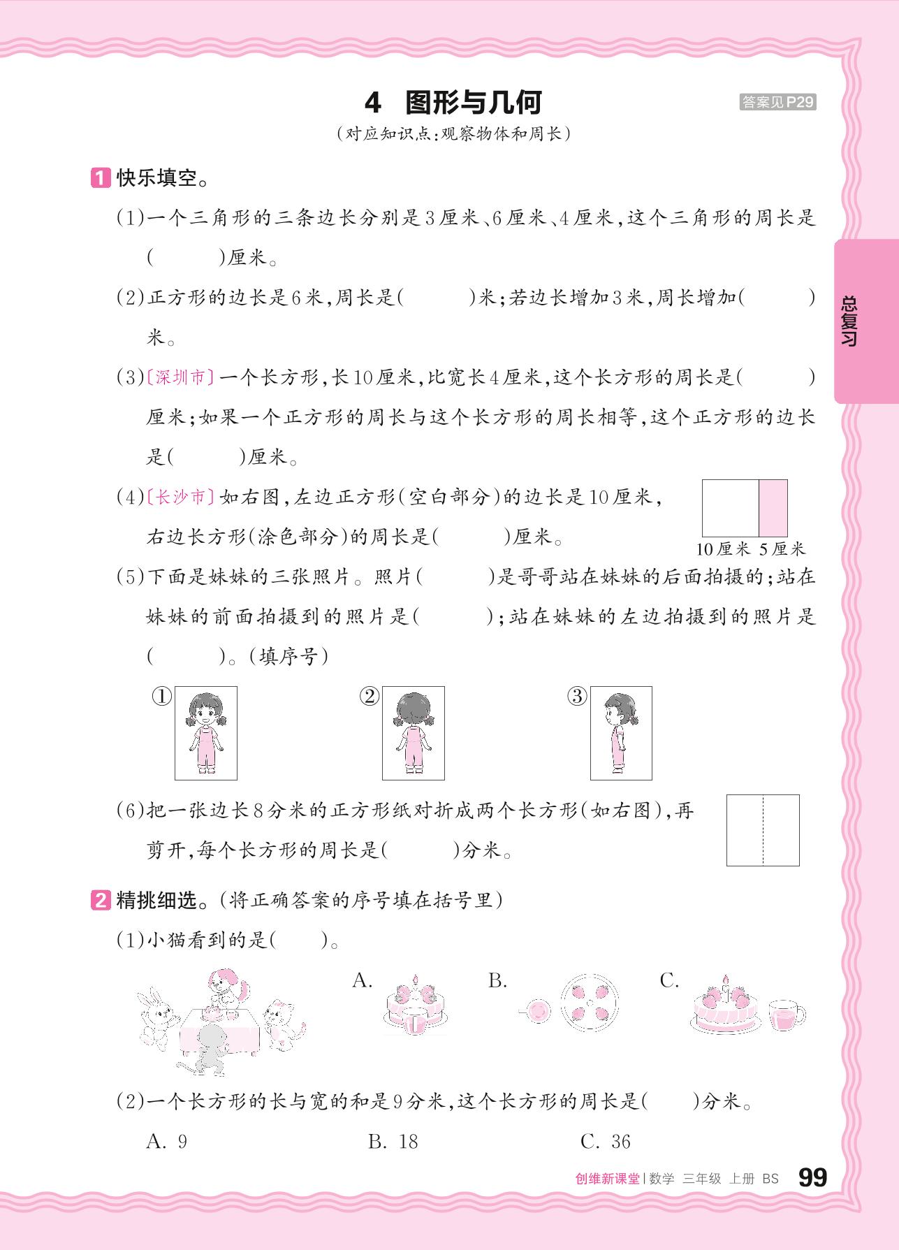 2024秋上册三年级数学北师版 总复习——4. 图形与几何