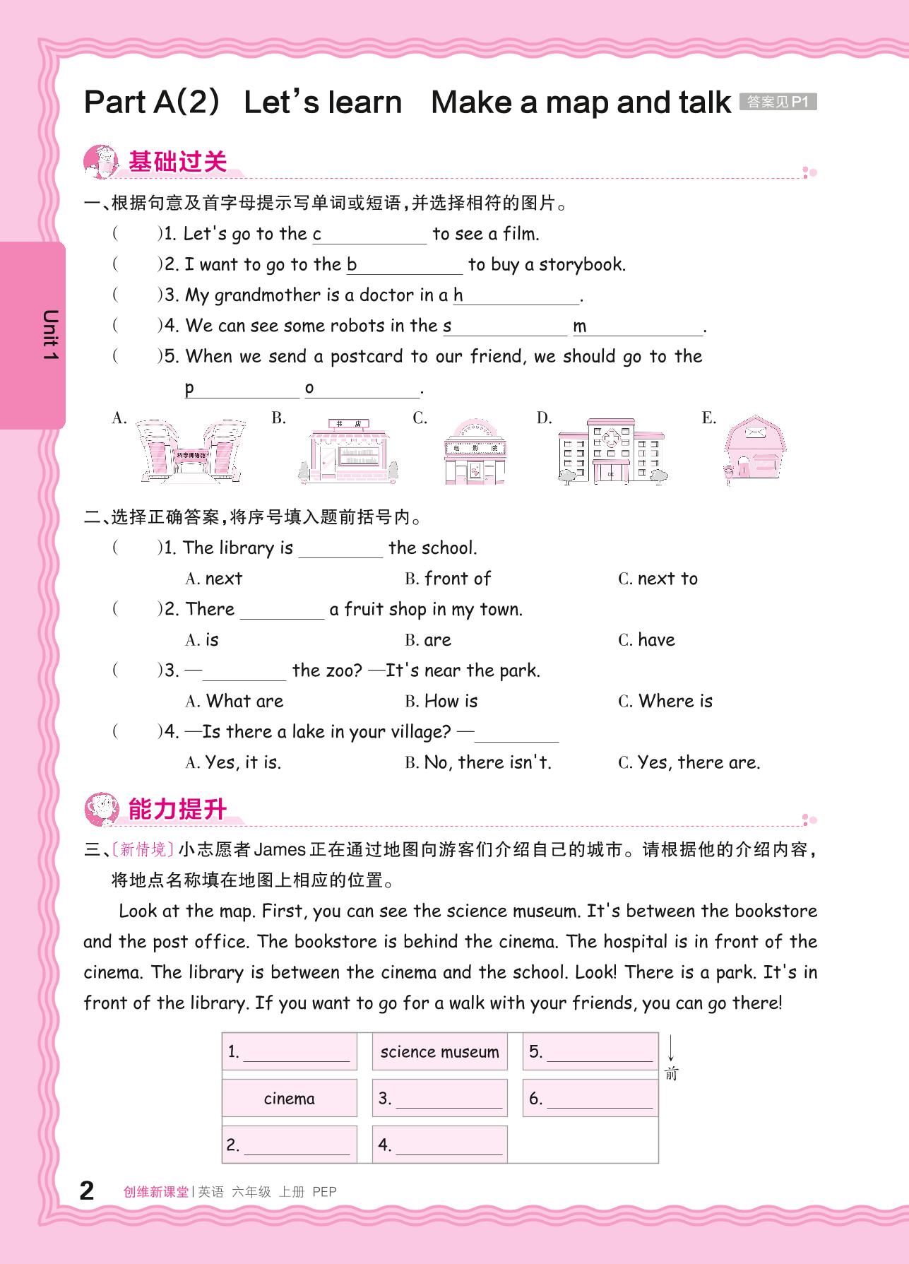 2024秋上册六年级英语人教PEP版(三起始) Unit 1—Part A(2) Let's learn Make a map and talk