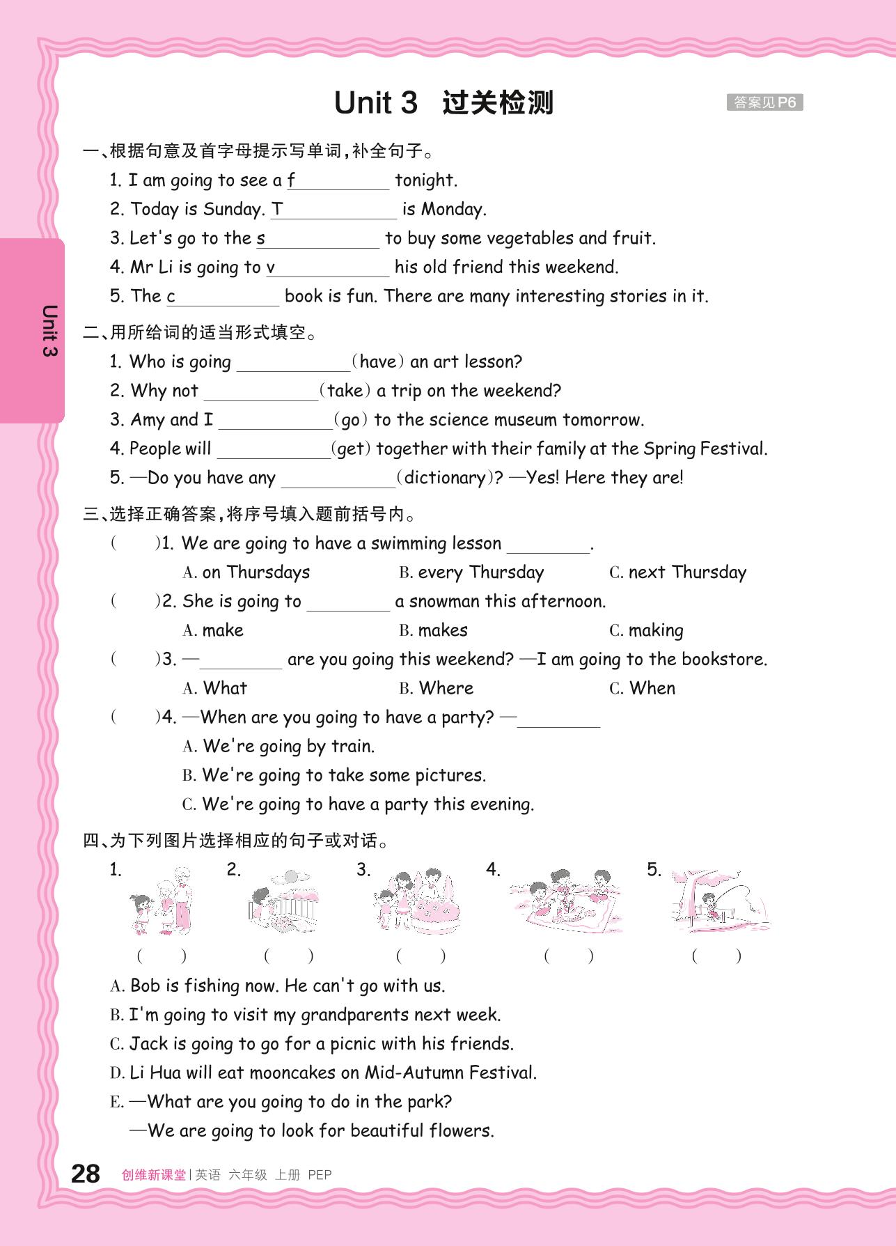 2024秋上册六年级英语人教PEP版(三起始) Unit 3 过关检测