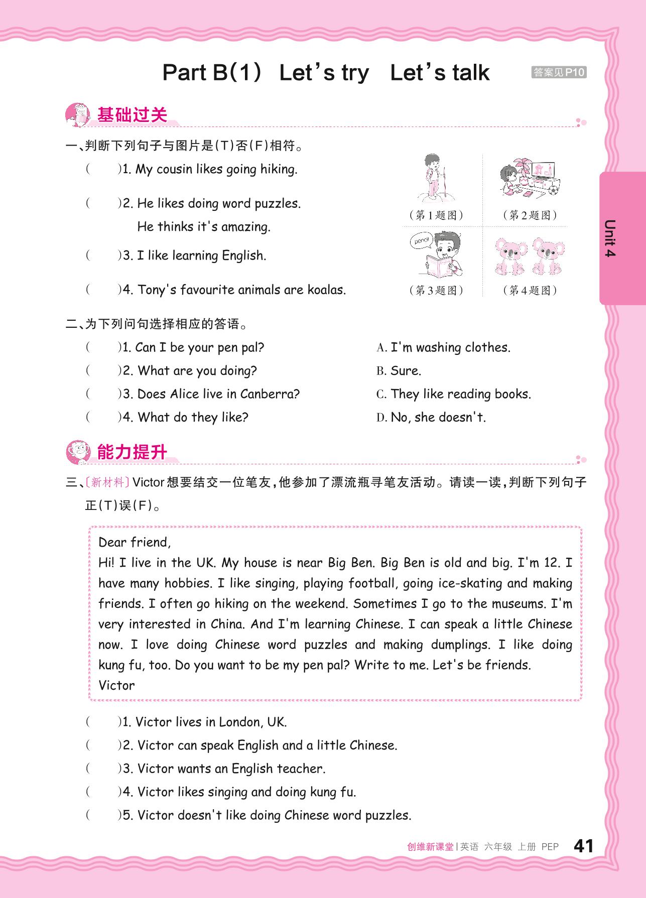 2024秋上册六年级英语人教PEP版(三起始) Unit 4—Part B(1) Let's try Let's talk