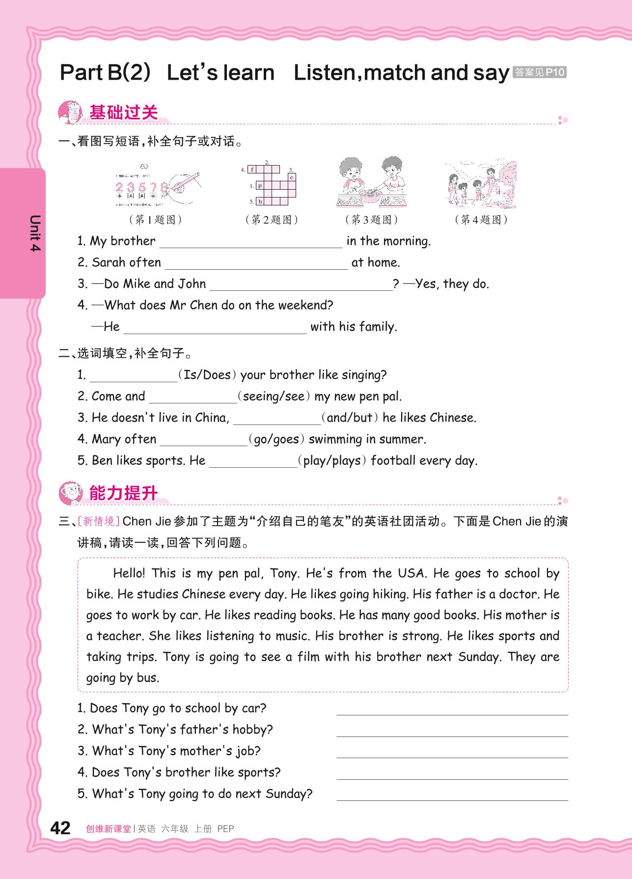 2024秋上册六年级英语人教PEP版(三起始) Unit 4—Part B(2) Let's learn Listen,match and say
