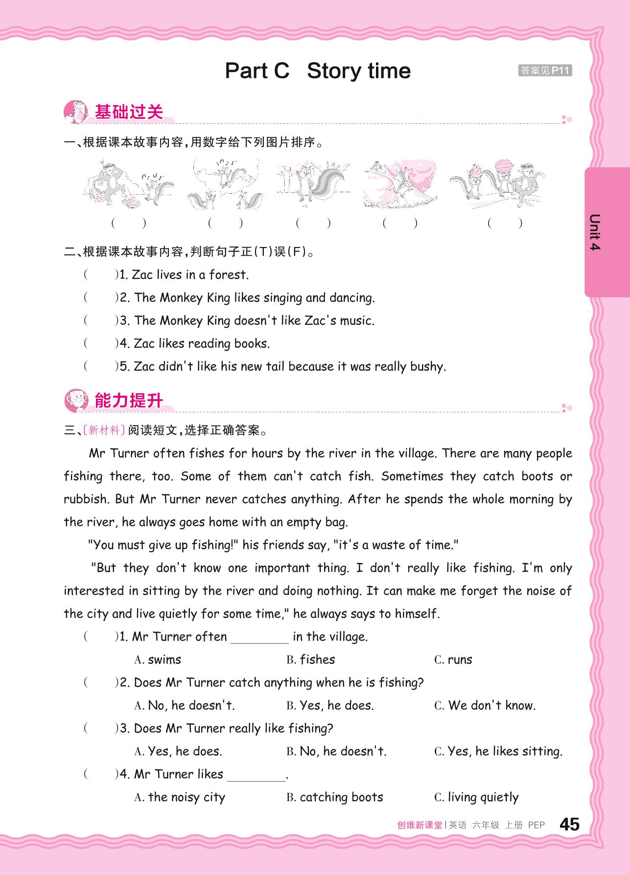 2024秋上册六年级英语人教PEP版(三起始) Unit 4—Part C Story time