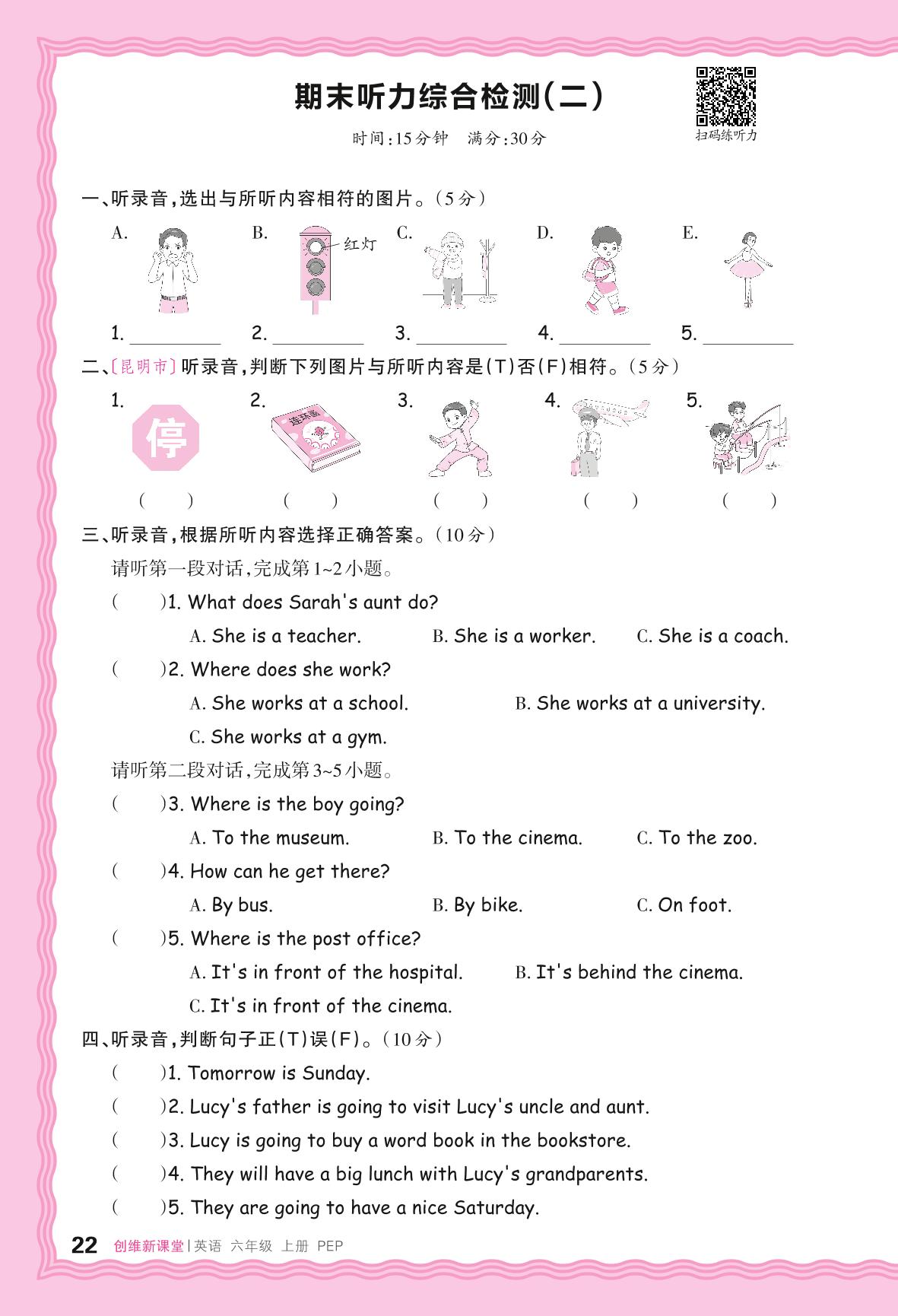2024秋上册六年级英语人教PEP版(三起始) 期末听力综合检测(二)