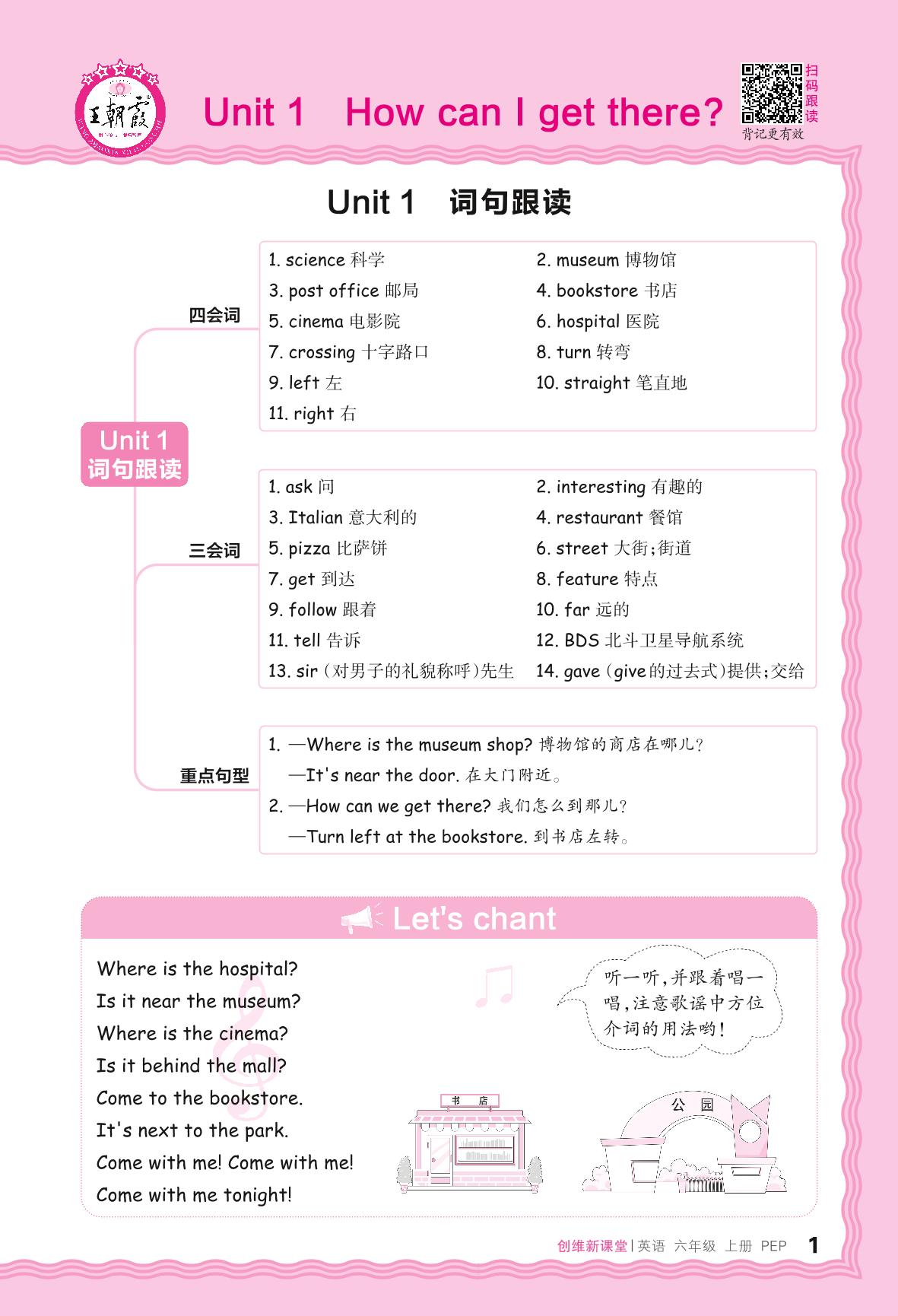 2024秋上册六年级英语人教PEP版(三起始) Unit 1 词句跟读