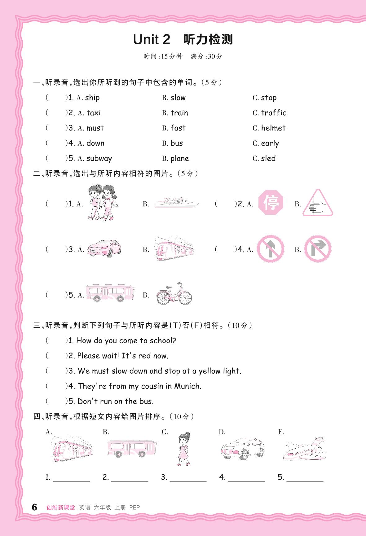 2024秋上册六年级英语人教PEP版(三起始) Unit 2 听力检测