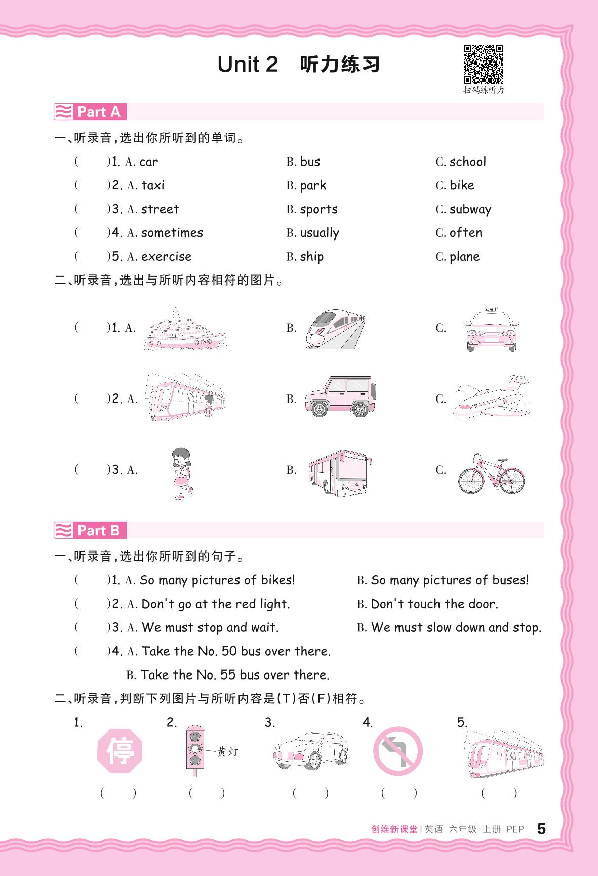 2024秋上册六年级英语人教PEP版(三起始) Unit 2 听力练习