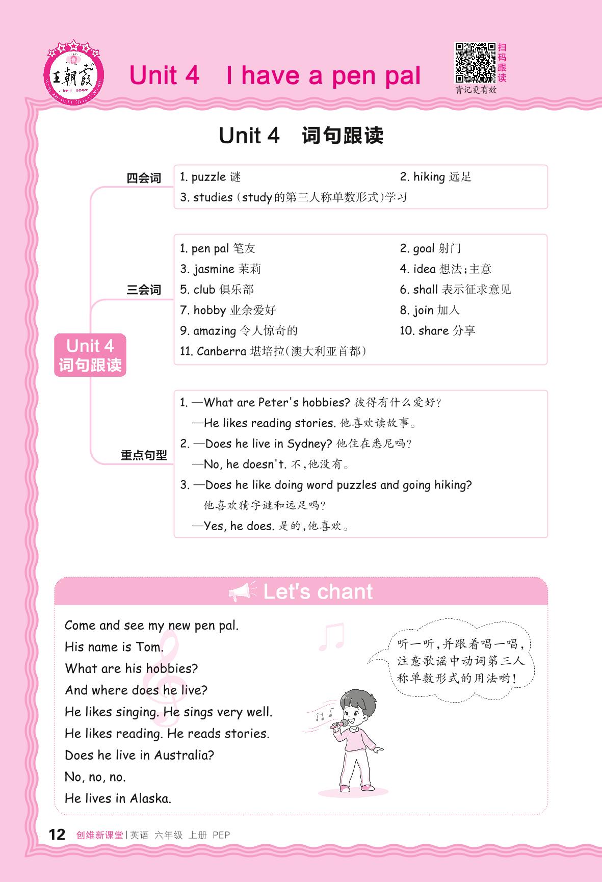 2024秋上册六年级英语人教PEP版(三起始) Unit 4 词句跟读