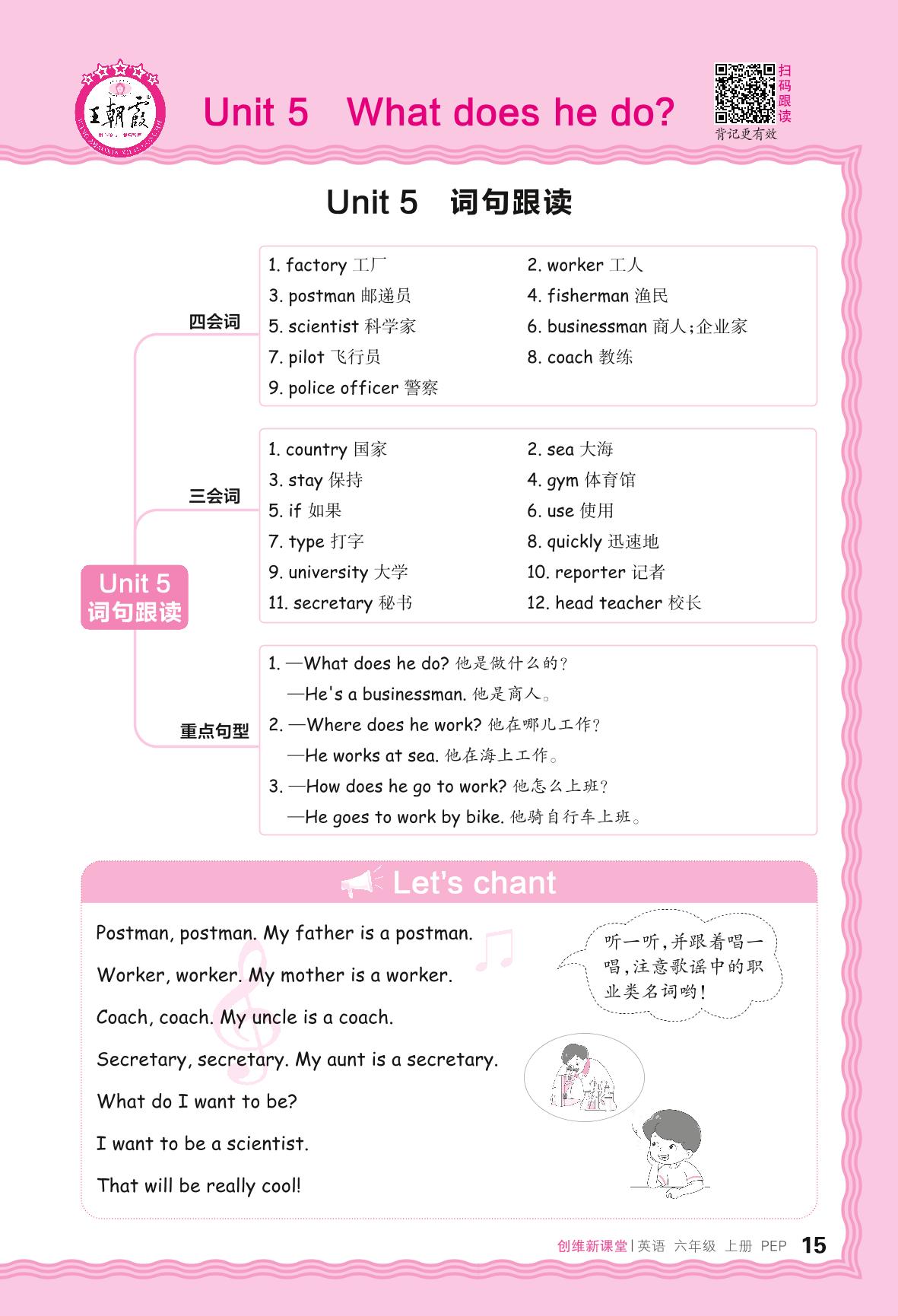 2024秋上册六年级英语人教PEP版(三起始) Unit 5 词句跟读