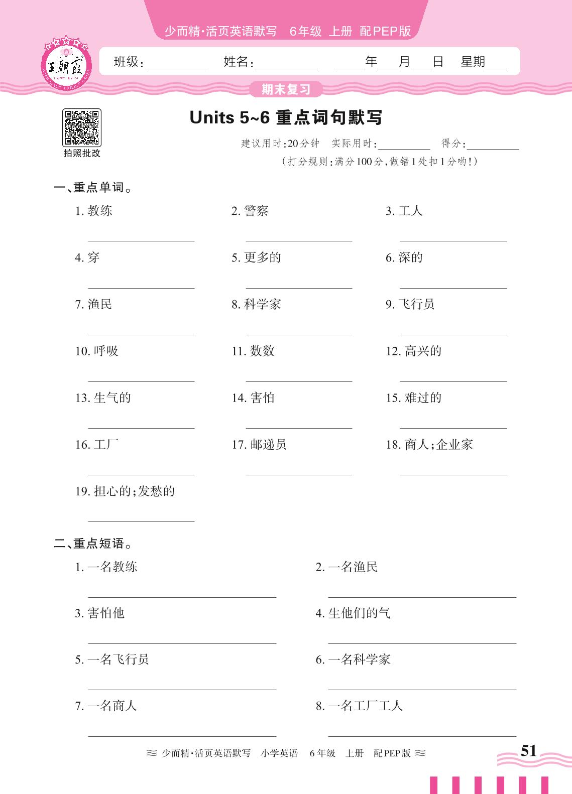 2024秋上册六年级英语人教PEP版(三起始) 期末复习—Units 5~6 重点词句默写