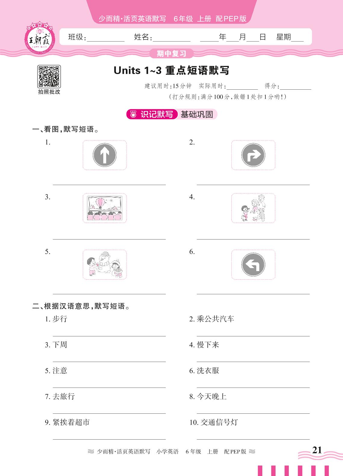 2024秋上册六年级英语人教PEP版(三起始) 期中复习—Units 1~3 重点短语默写