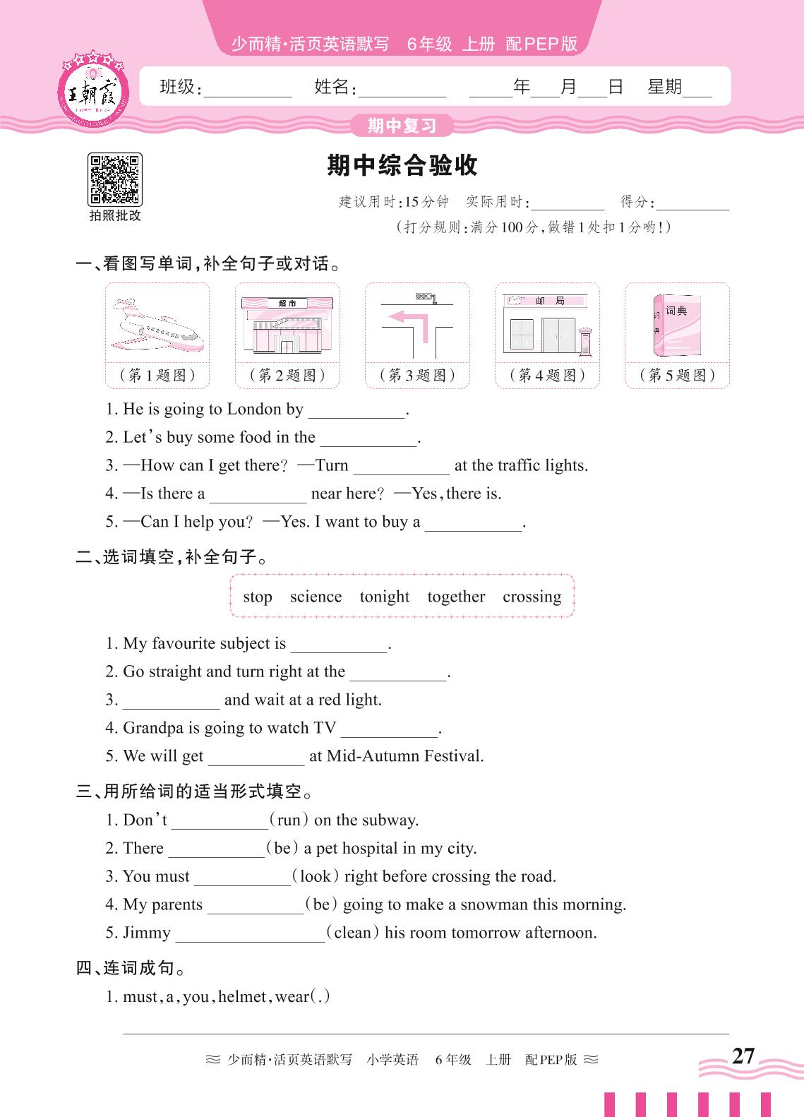 2024秋上册六年级英语人教PEP版(三起始) 期中综合验收