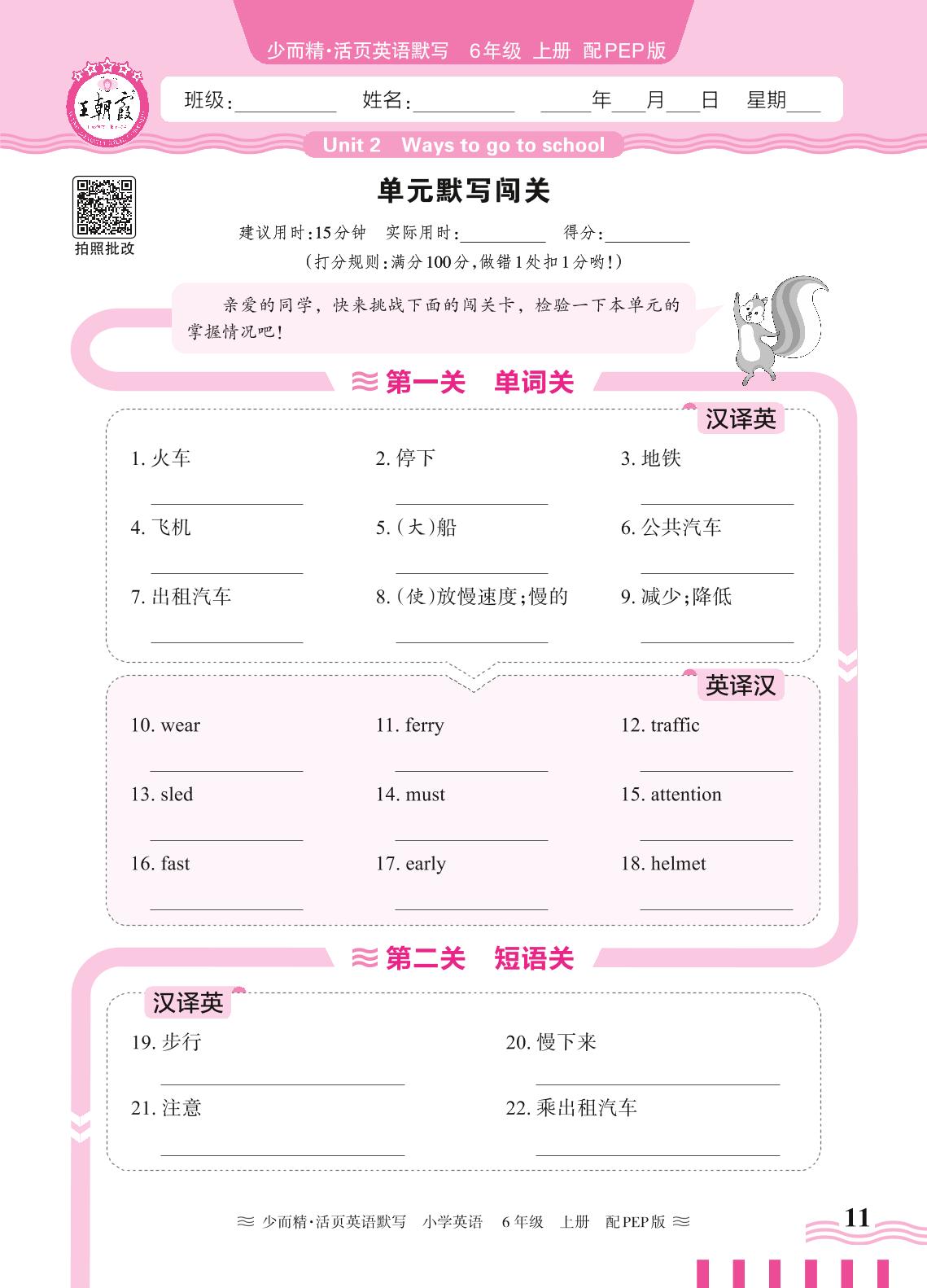 2024秋上册六年级英语人教PEP版(三起始) Unit 2 单元默写闯关