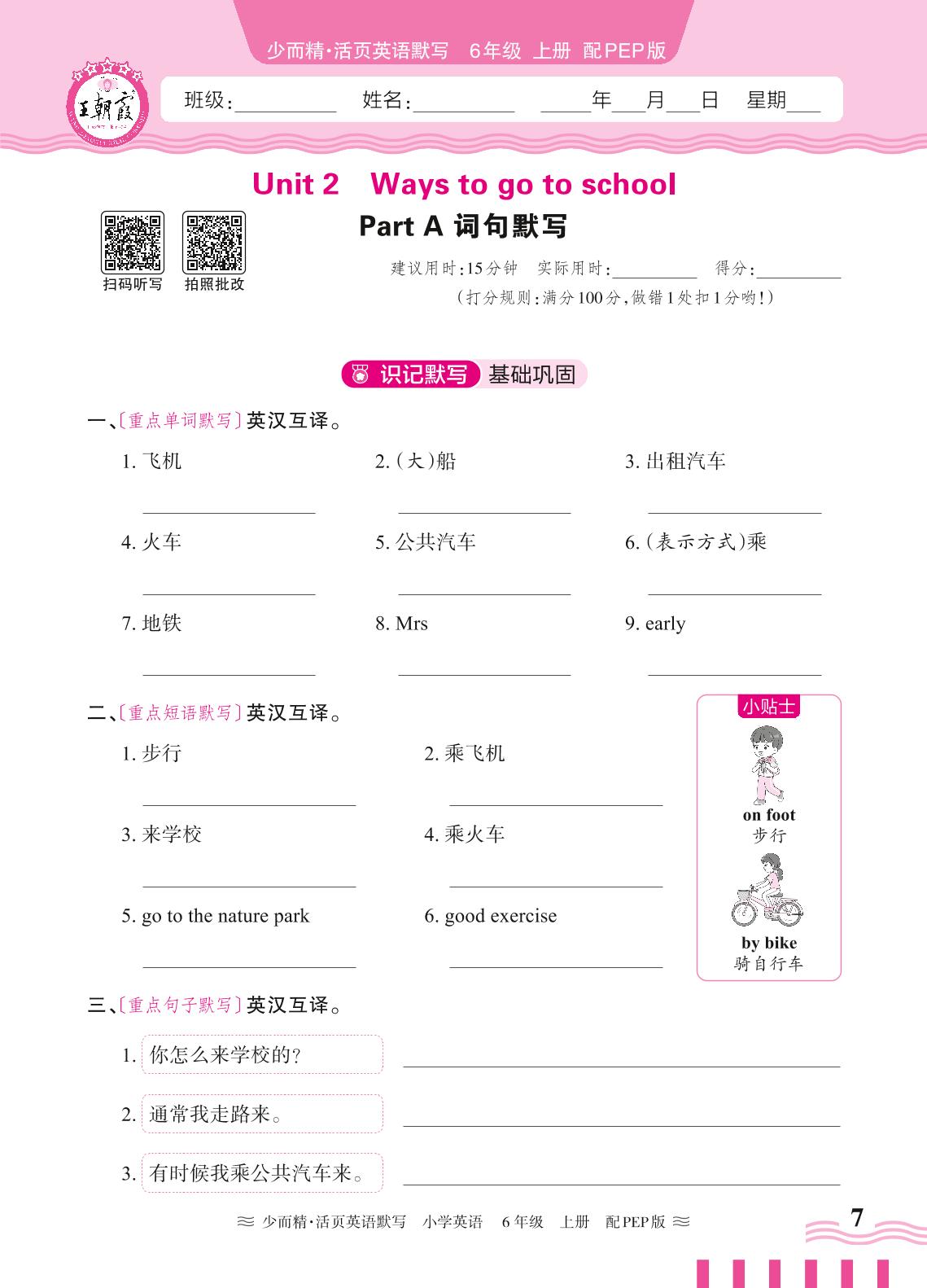 2024秋上册六年级英语人教PEP版(三起始) Unit 2—Part A 词句默写