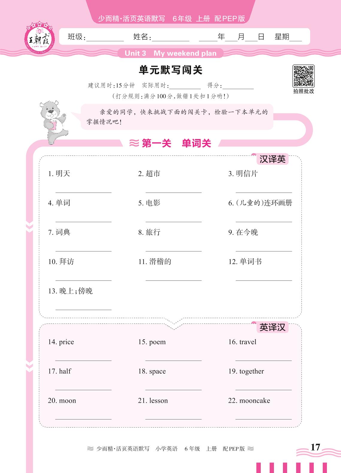 2024秋上册六年级英语人教PEP版(三起始) Unit 3 单元默写闯关