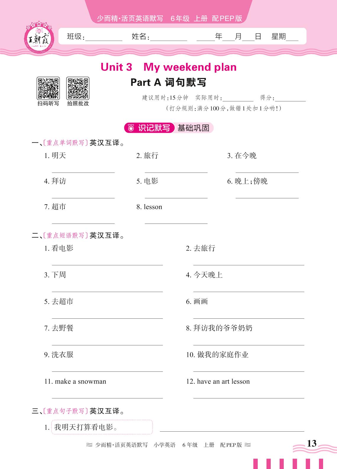 2024秋上册六年级英语人教PEP版(三起始) Unit 3—Part A 词句默写