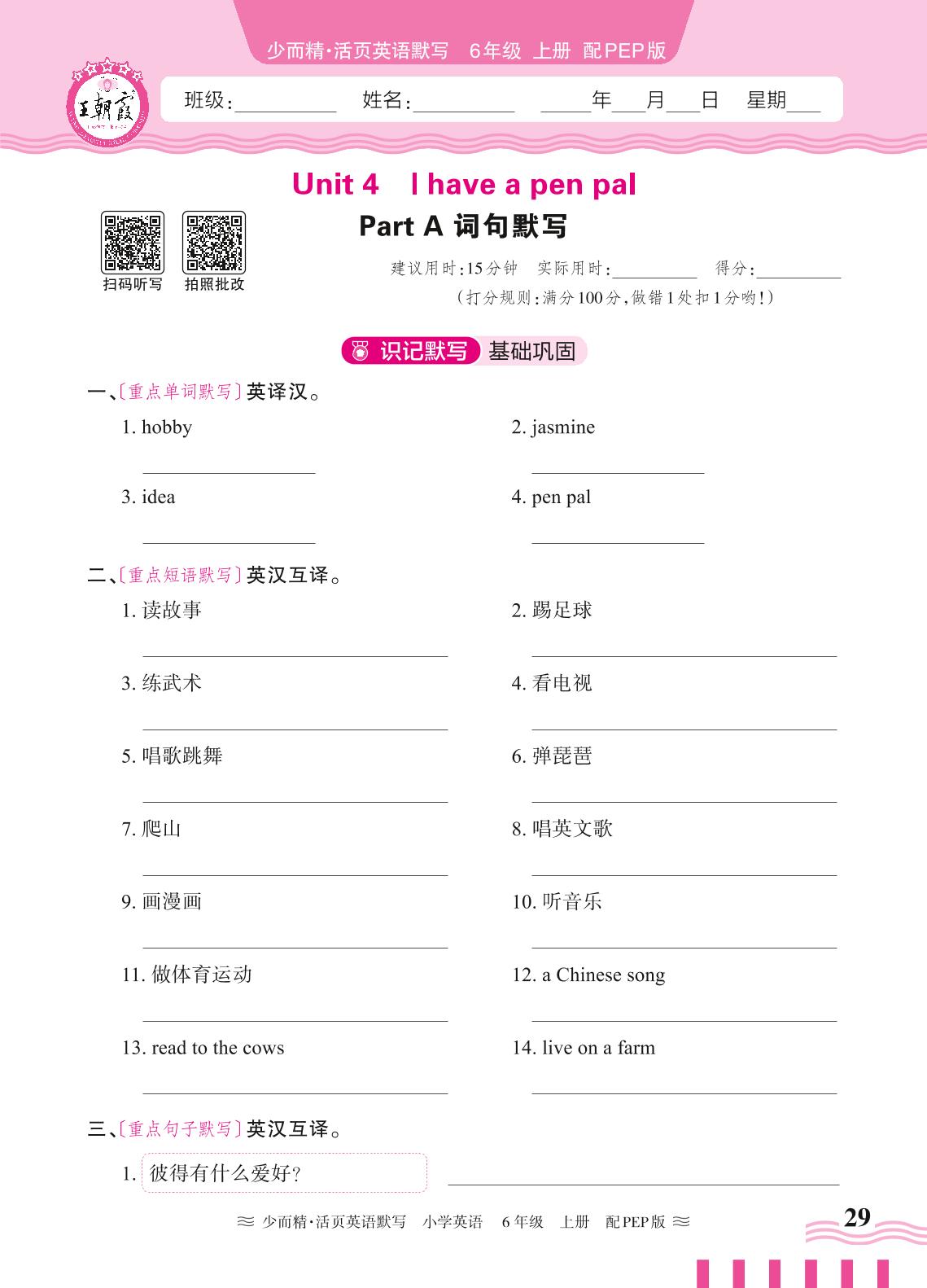 2024秋上册六年级英语人教PEP版(三起始) Unit 4—Part A 词句默写