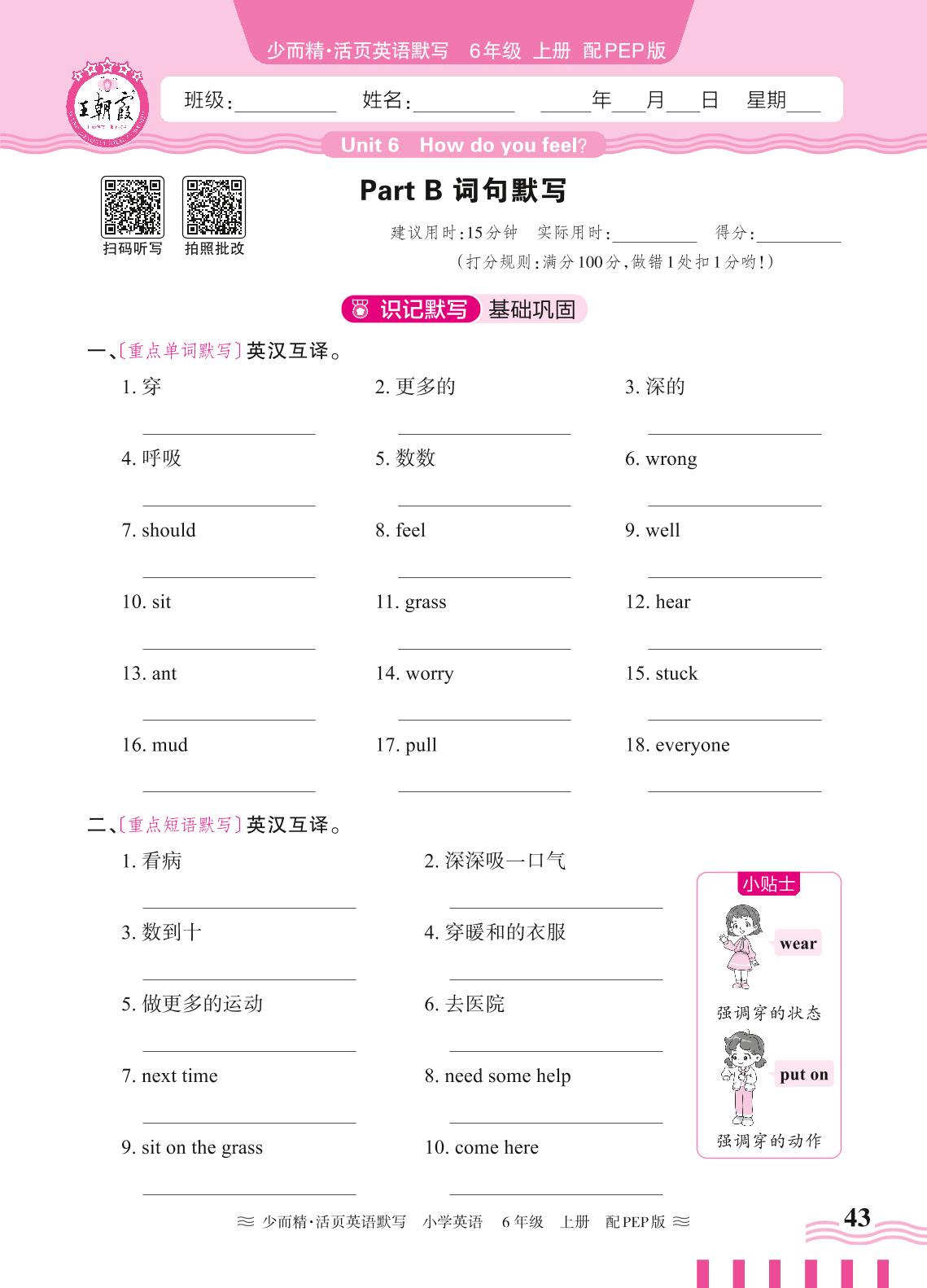 2024秋上册六年级英语人教PEP版(三起始) Unit 6—Part B 词句默写