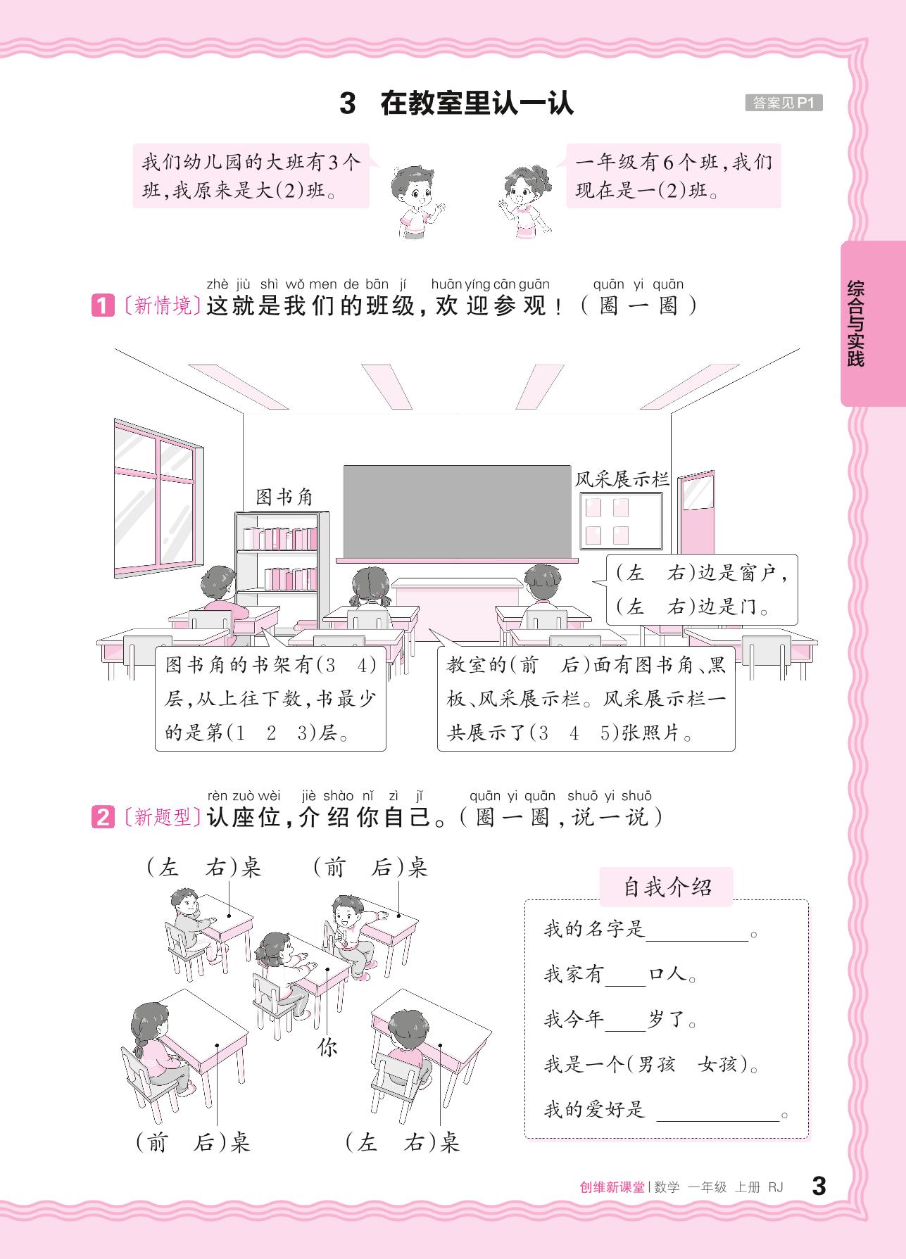 2024秋上册一年级数学人教版 数学游戏——3. 在教室里认一认_R240816162224601