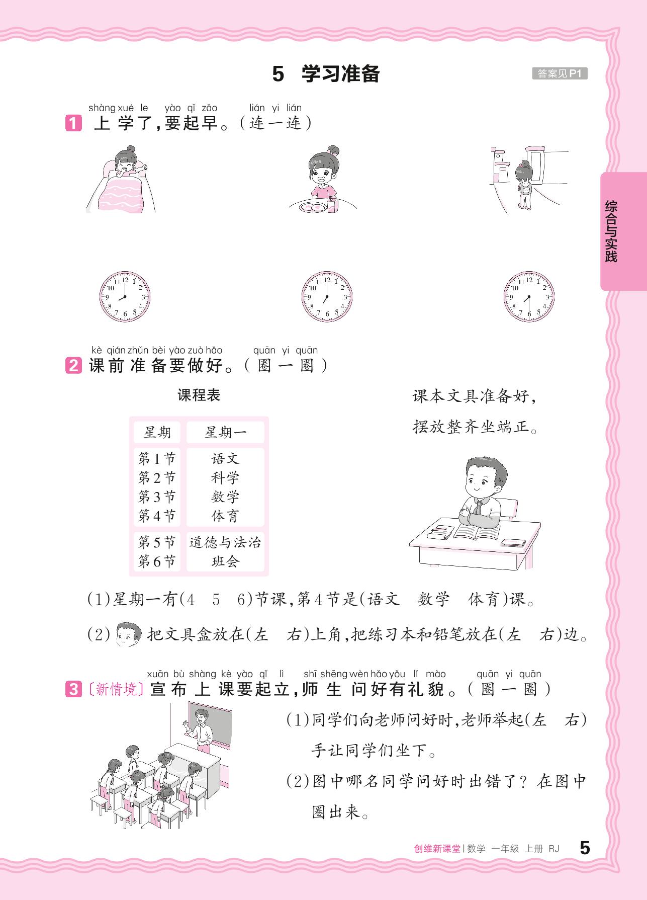 2024秋上册一年级数学人教版 数学游戏——5. 学习准备_R240816162222930