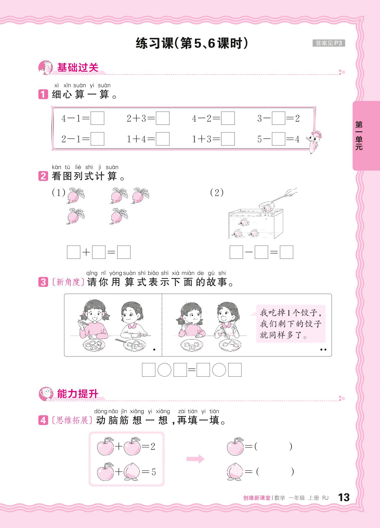 2024秋上册一年级数学人教版 第一单元 5以内数的认识和加、减法——1~5的加、减法练习课
