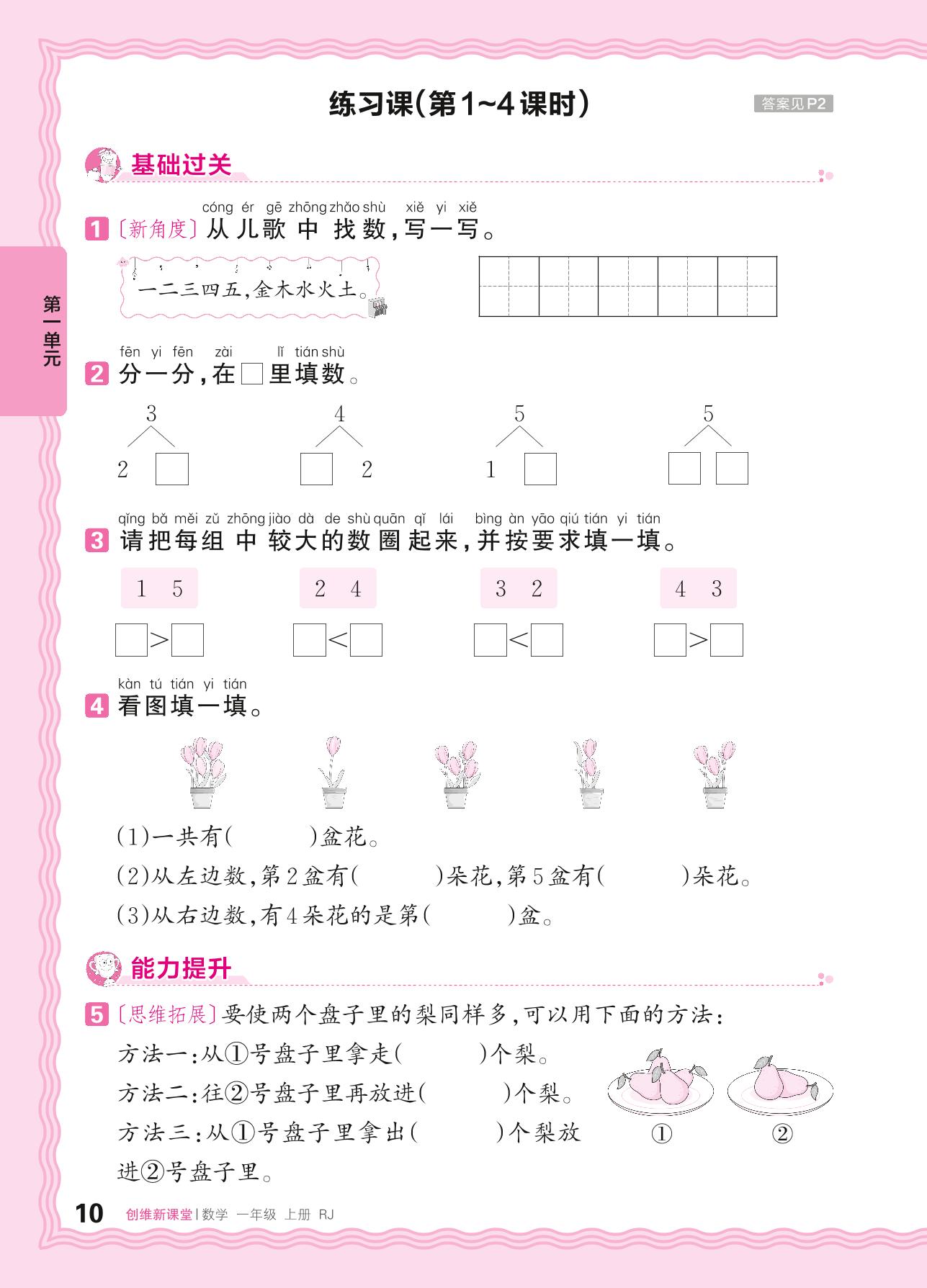 2024秋上册一年级数学人教版 第一单元 5以内数的认识和加、减法——1~5的认识练习课