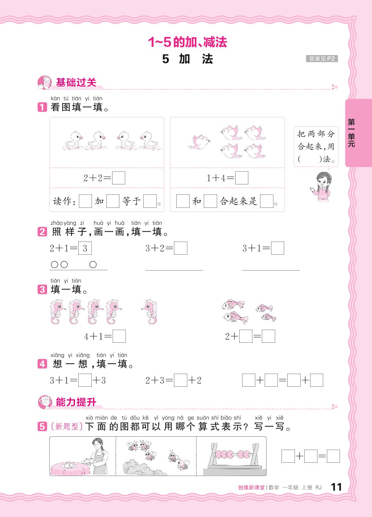 2024秋上册一年级数学人教版 第一单元 5以内数的认识和加、减法——5. 加法