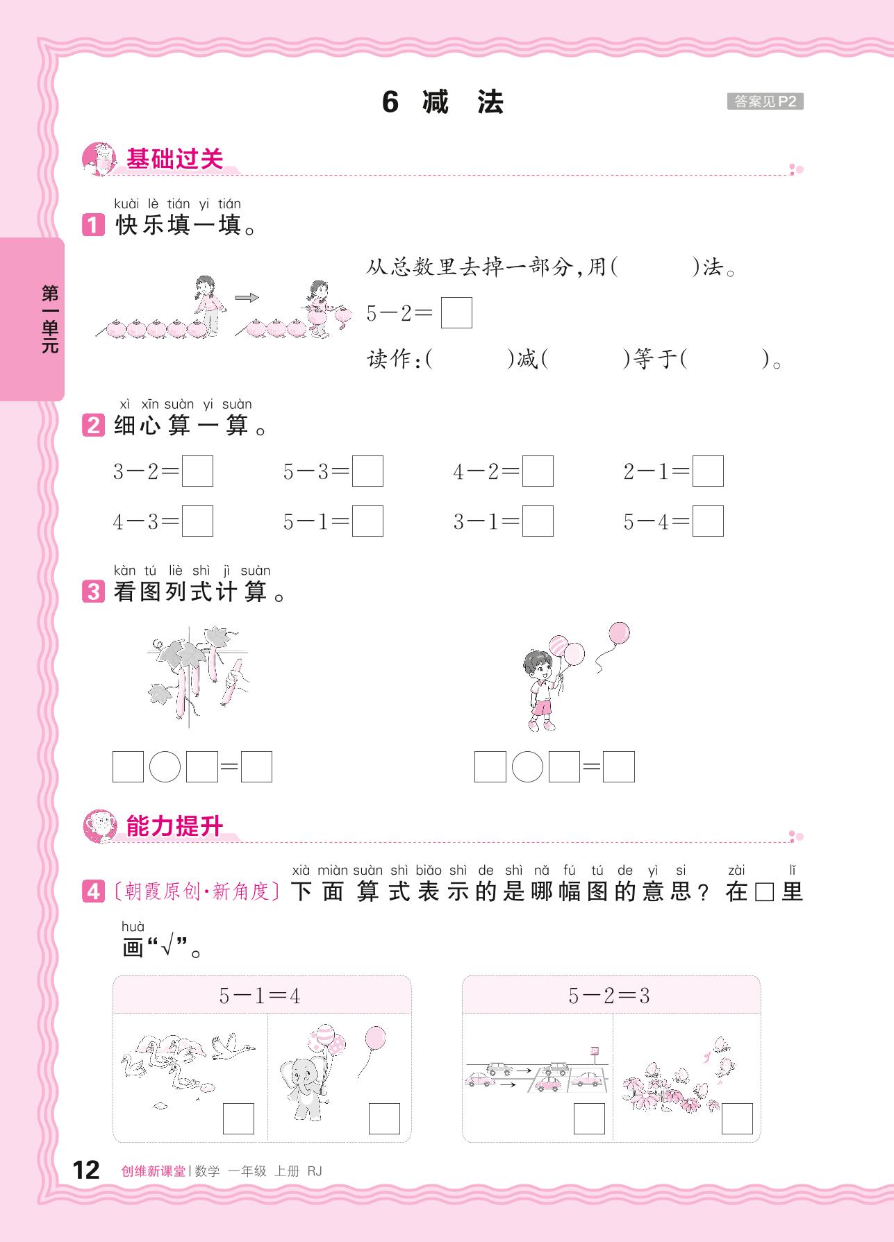2024秋上册一年级数学人教版 第一单元 5以内数的认识和加、减法——6. 减法