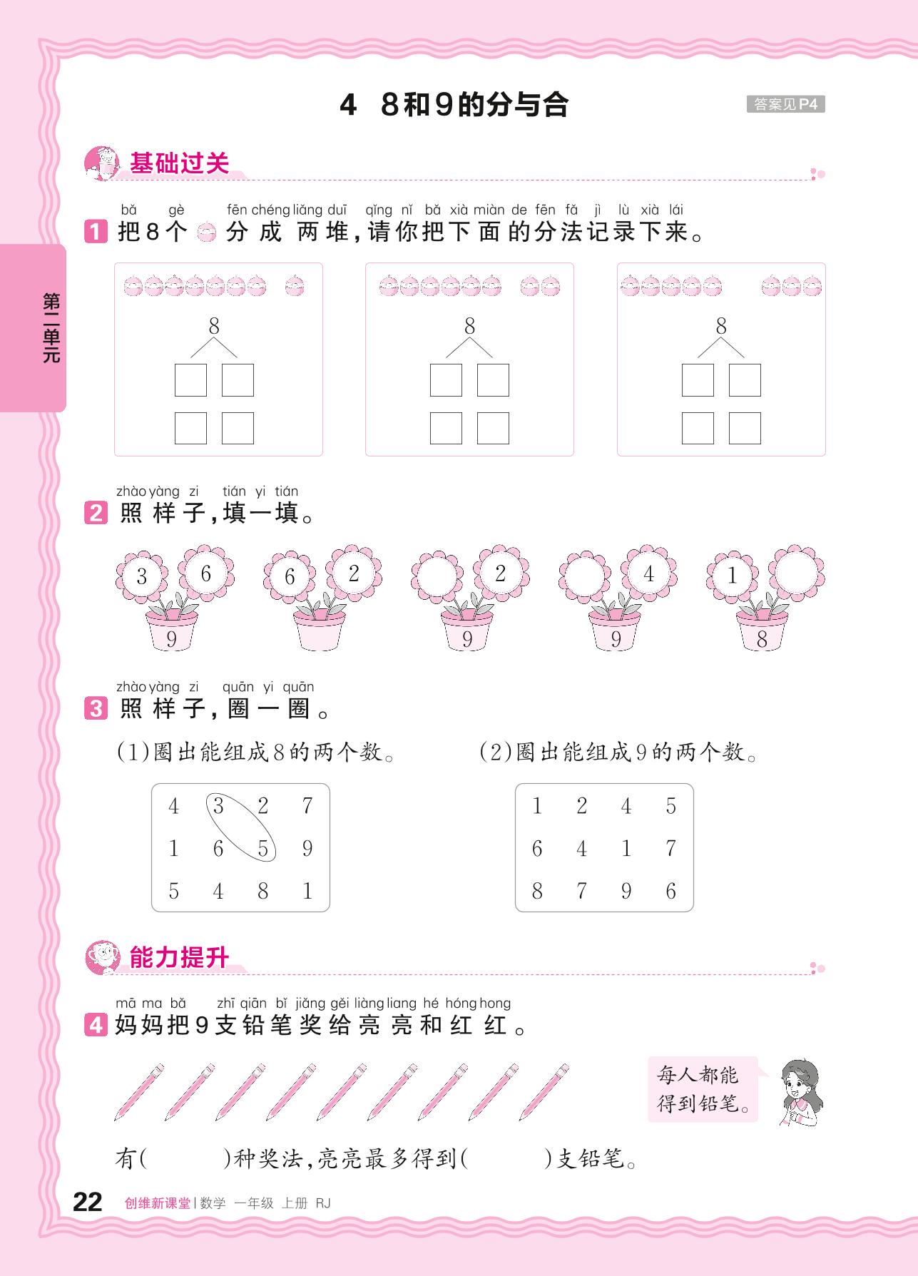 2024秋上册一年级数学人教版 第二单元 6~10的认识和加、减法——4. 8和9的分与合