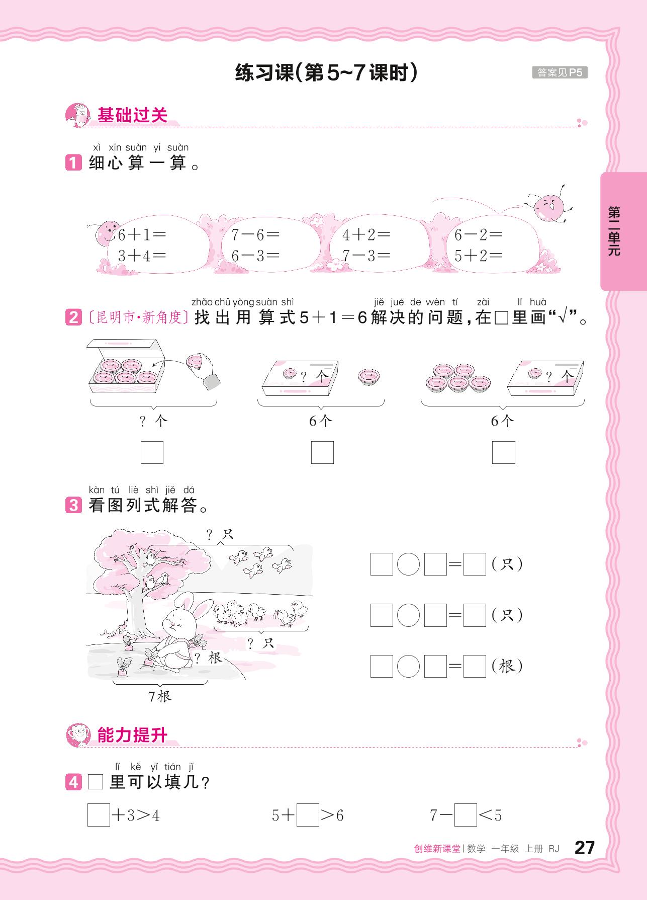 2024秋上册一年级数学人教版 第二单元 6~10的认识和加、减法——6~9的加、减法及解决问题练习课