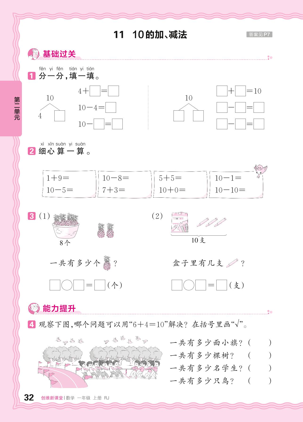 2024秋上册一年级数学人教版 第二单元 6~10的认识和加、减法——11. 10的加、减法