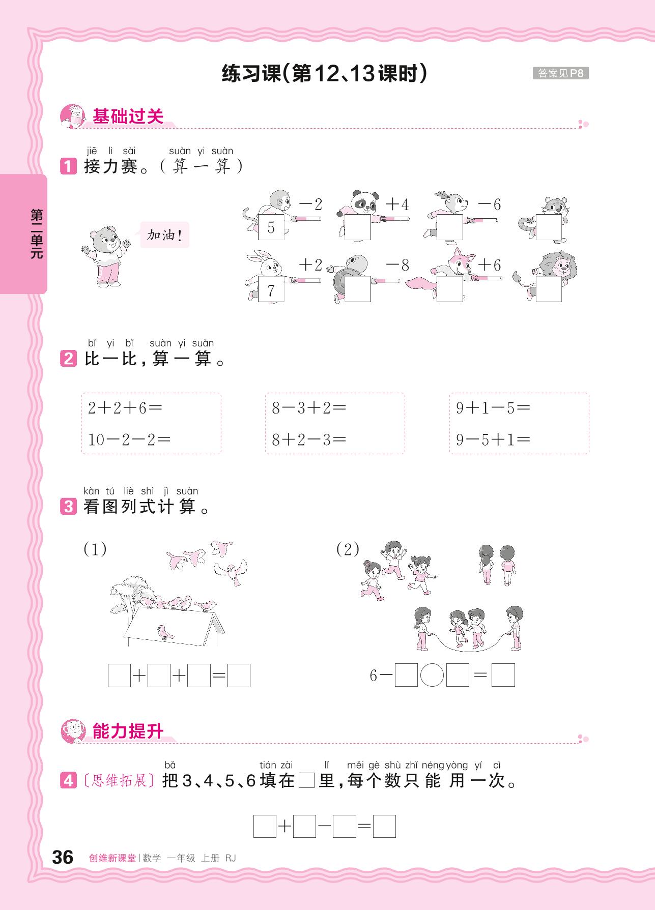 2024秋上册一年级数学人教版 第二单元 6~10的认识和加、减法——连加、连减、加、减混合练习课