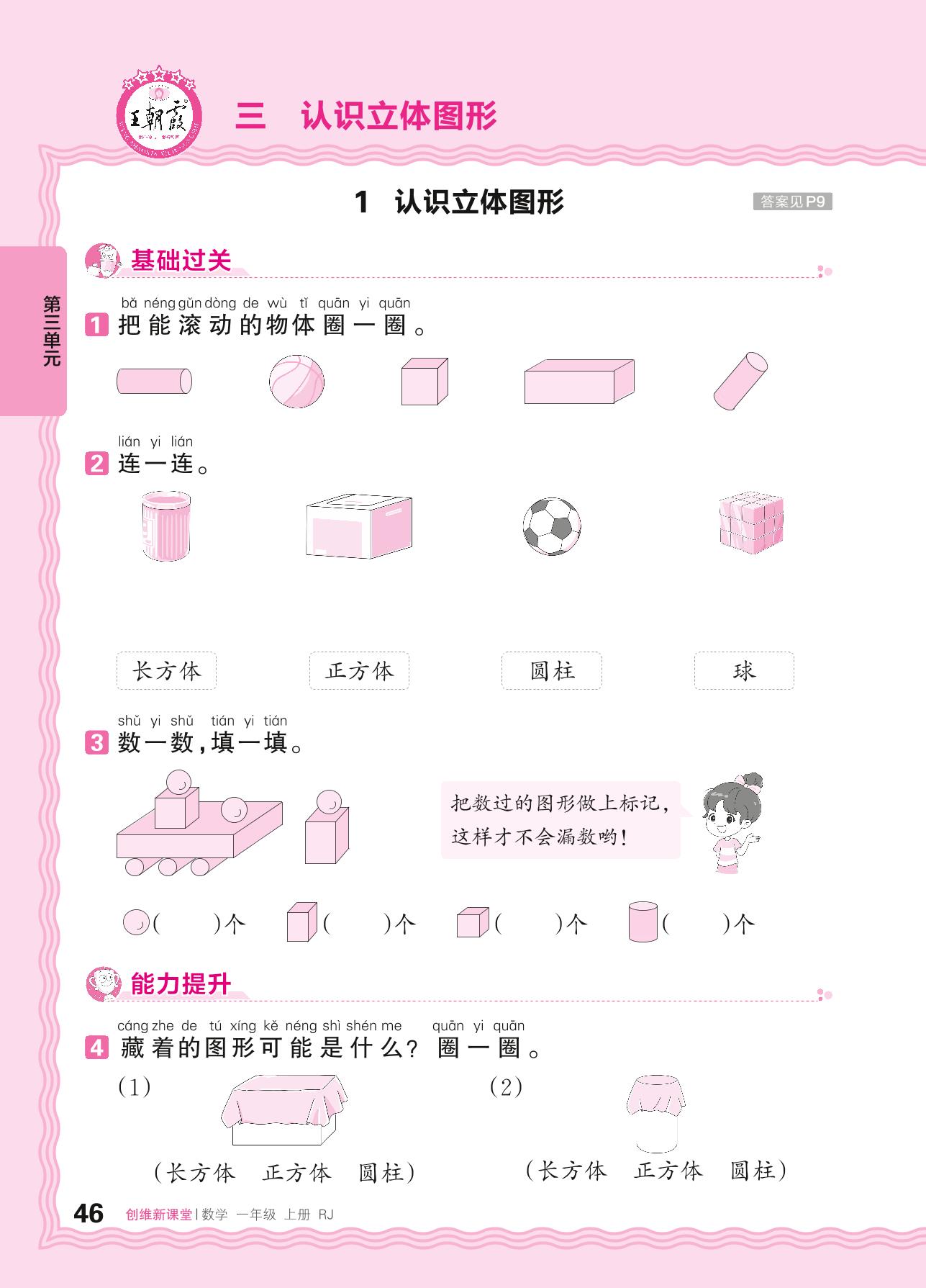 2024秋上册一年级数学人教版 第三单元 认识立体图形——1. 认识立体图形