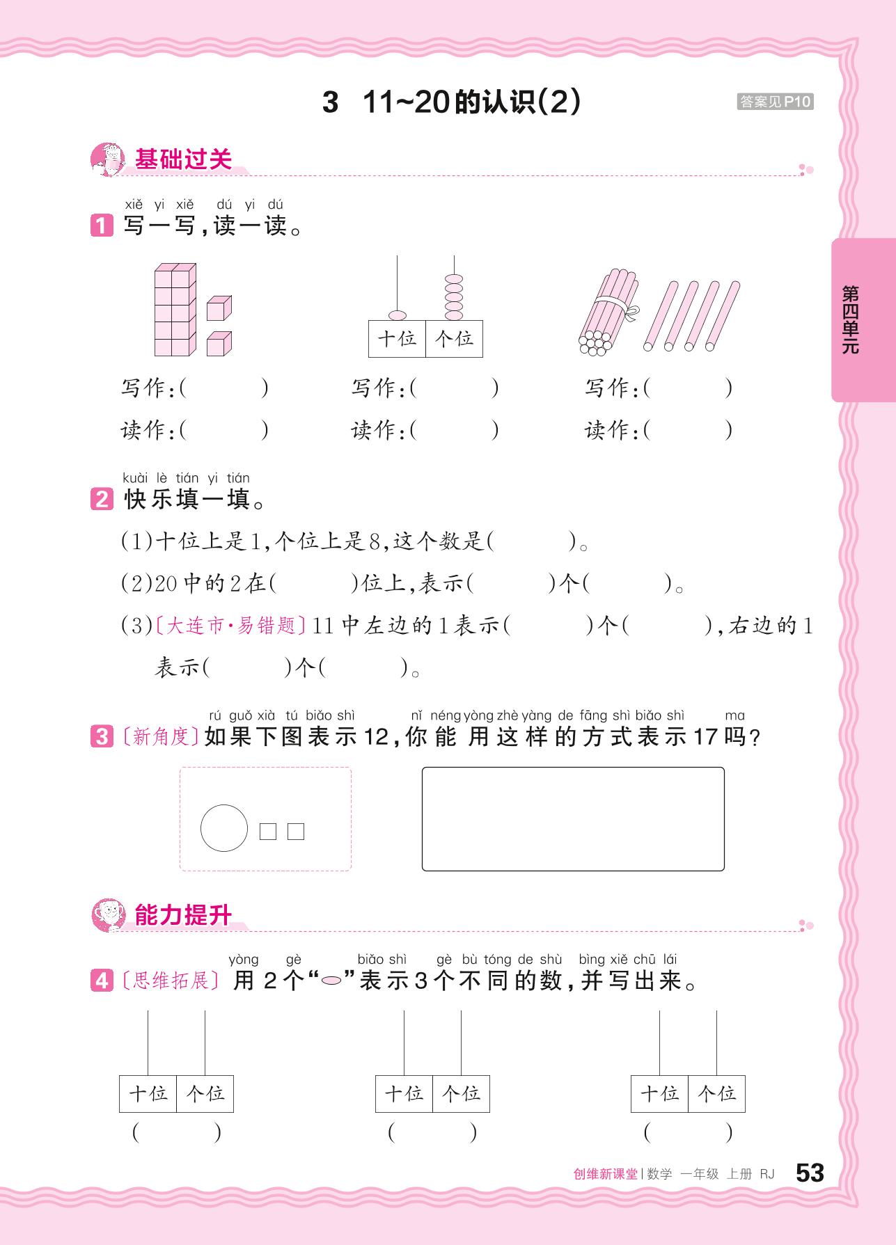 2024秋上册一年级数学人教版 第四单元 11~20的认识——3. 11~20的认识(2)