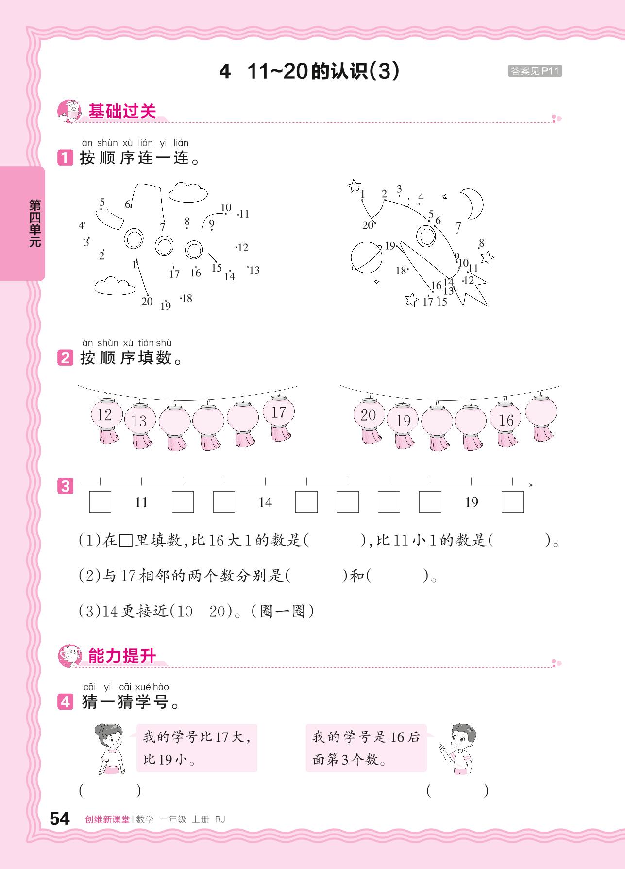 2024秋上册一年级数学人教版 第四单元 11~20的认识——4. 11~20的认识(3)