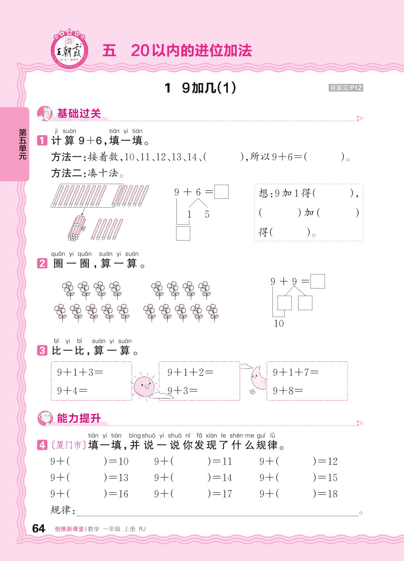 2024秋上册一年级数学人教版 第五单元 20以内的进位加法——1. 9加几(1)