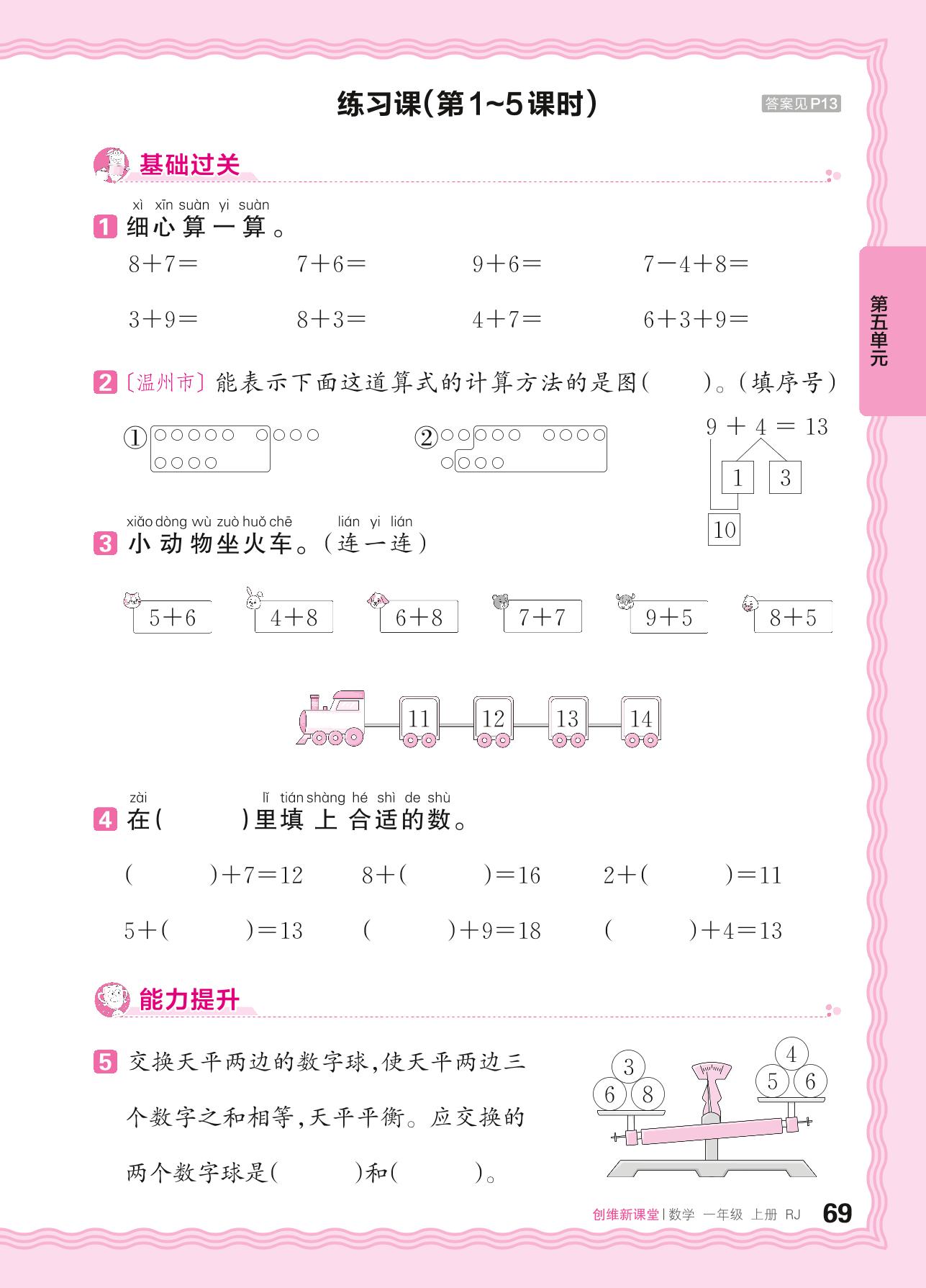 2024秋上册一年级数学人教版 第五单元 20以内的进位加法——2~9加几练习课