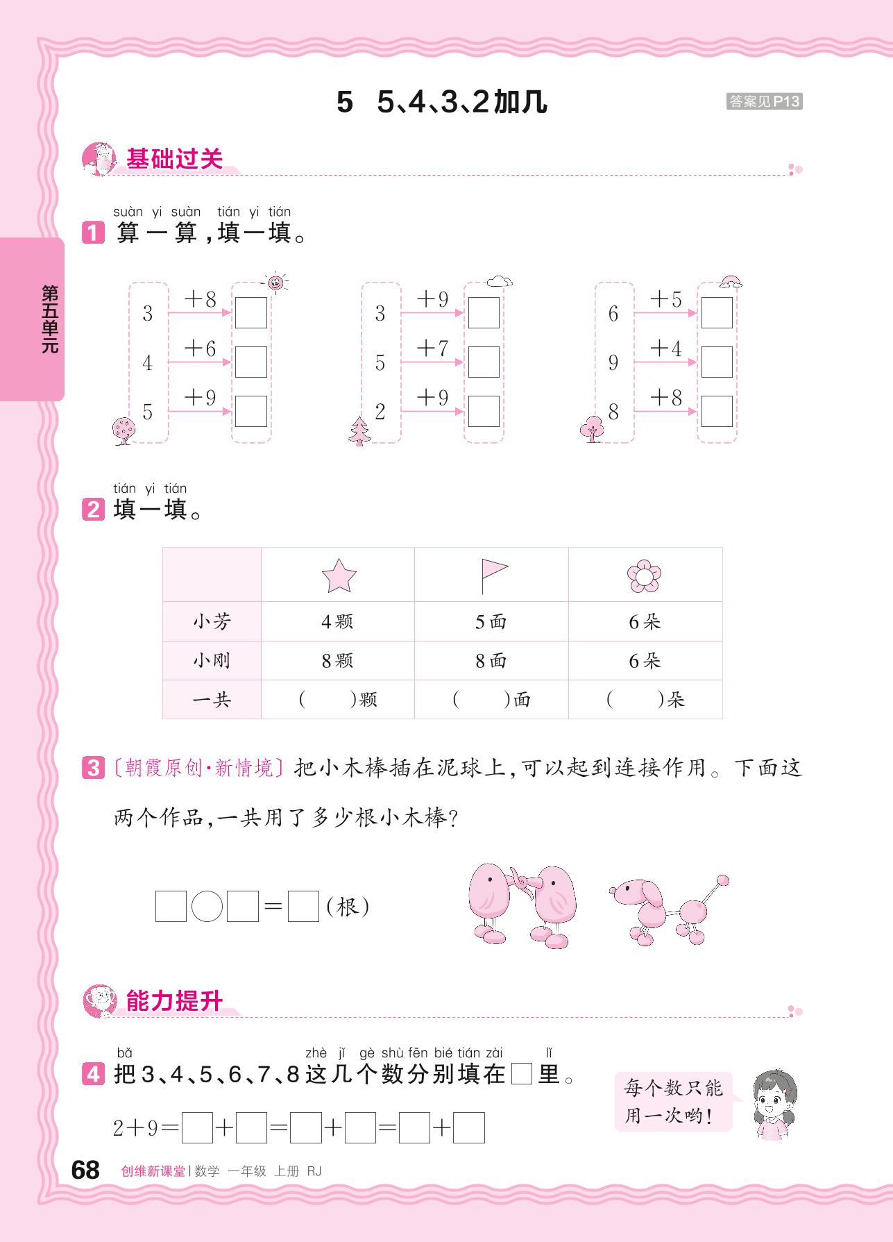 2024秋上册一年级数学人教版 第五单元 20以内的进位加法——5. 5、4、3、2加几_R240816162247143