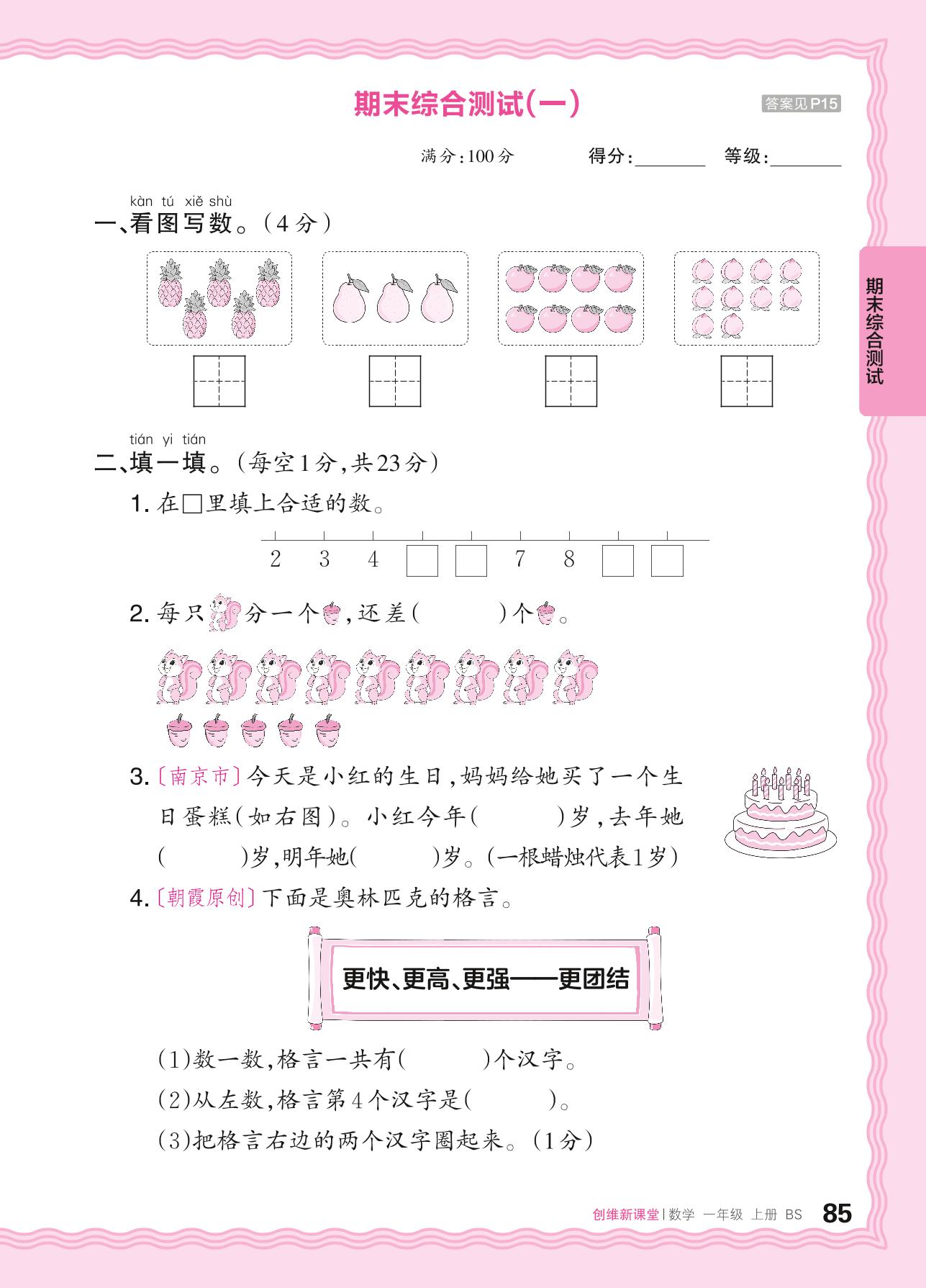 2024秋上册一年级数学北师版 期末综合测试(一)