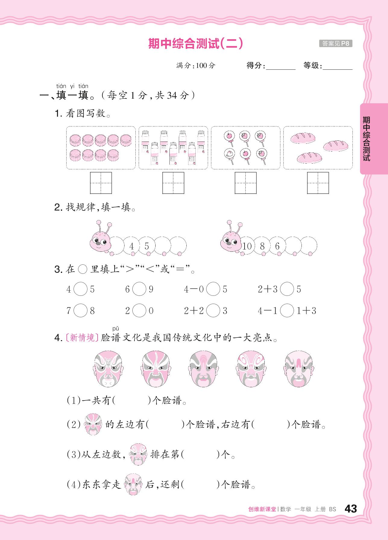 2024秋上册一年级数学北师版 期中综合测试(二)