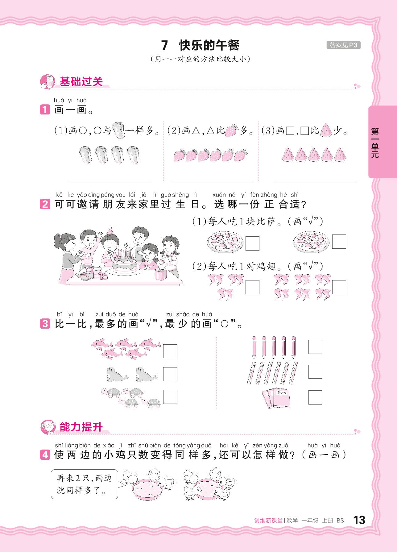 2024秋上册一年级数学北师版 第一单元 生活中的数——7. 快乐的午餐