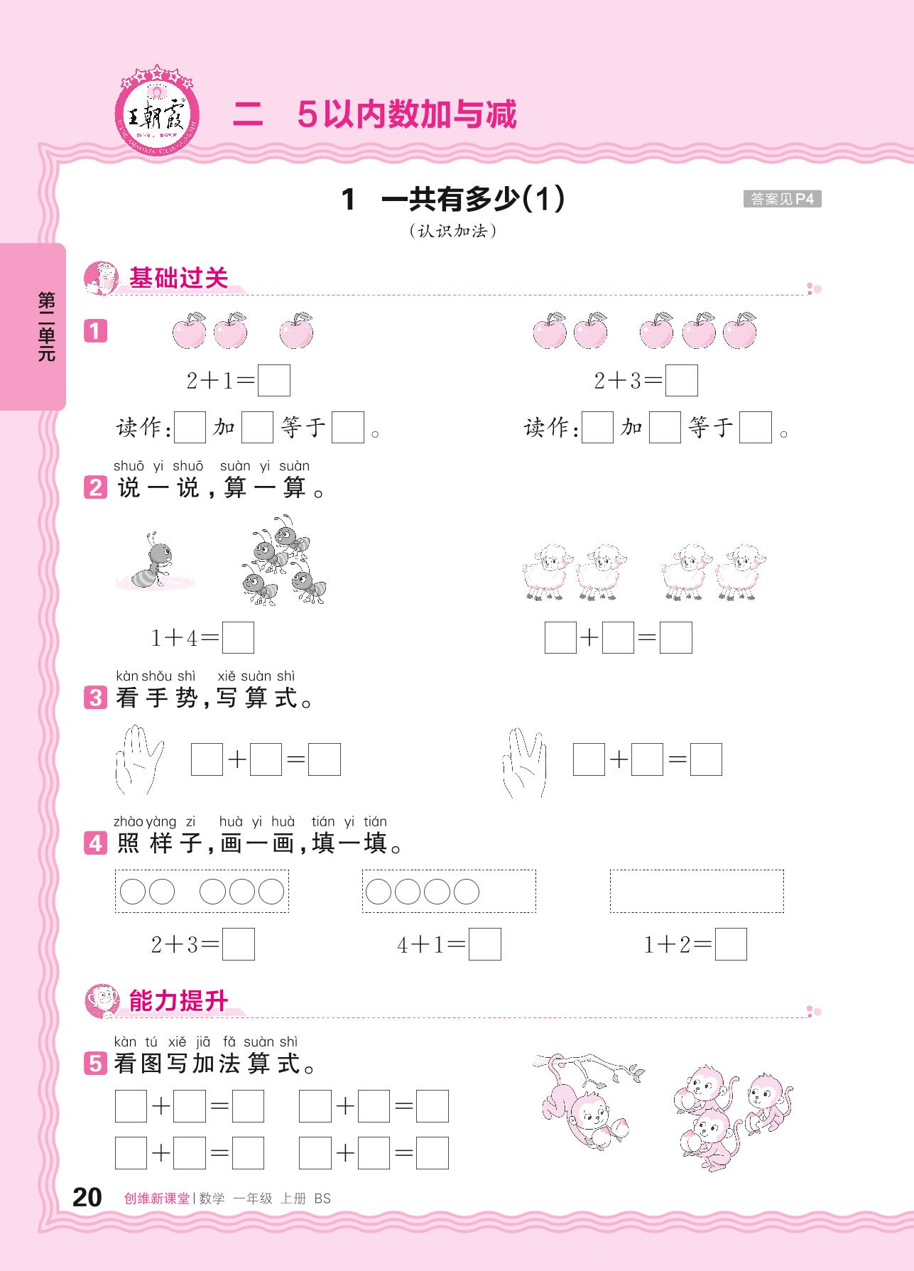 2024秋上册一年级数学北师版 第二单元 5以内数加与减——1. 一共有多少(1)