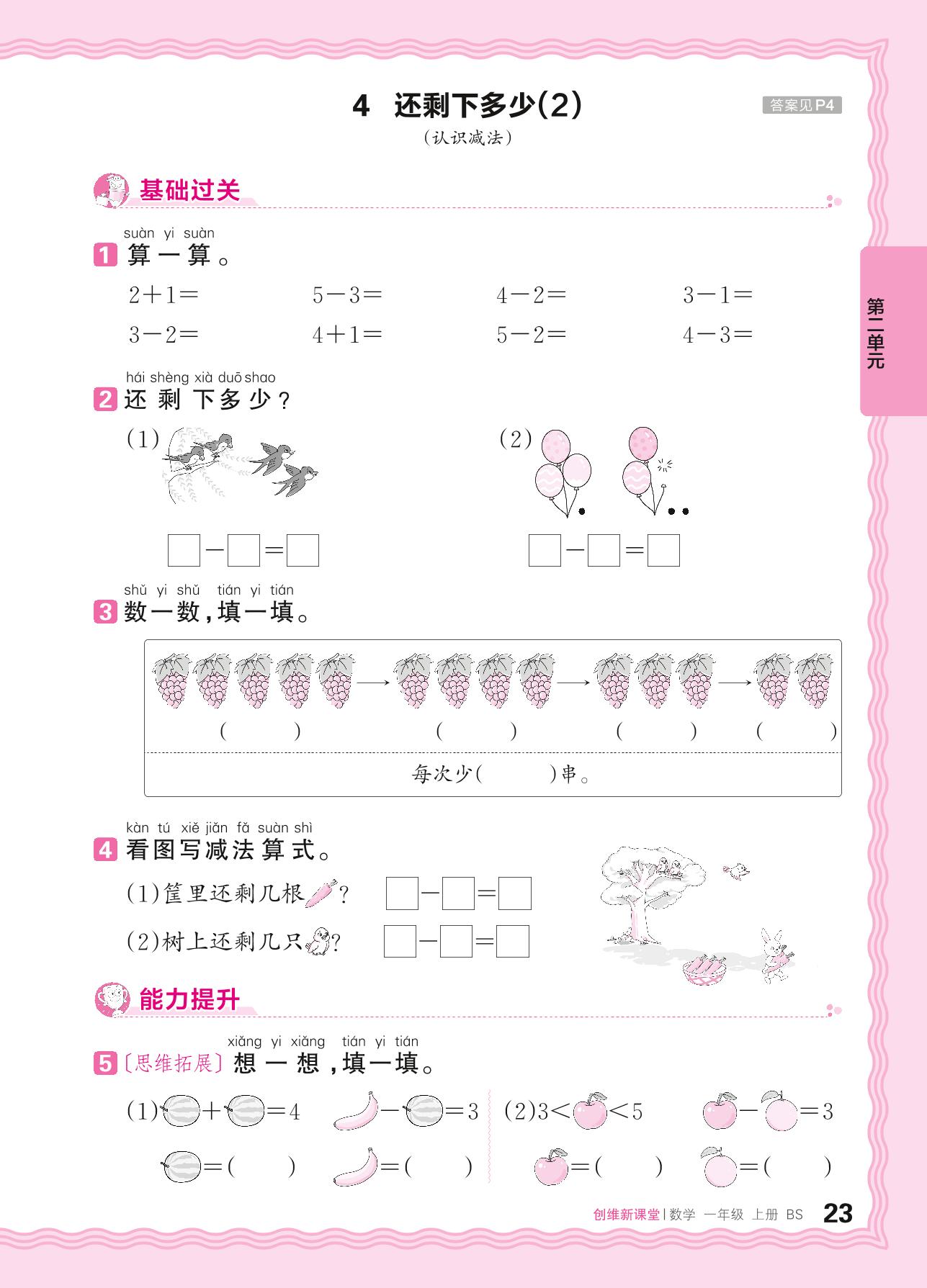 2024秋上册一年级数学北师版 第二单元 5以内数加与减——4. 还剩下多少(2)
